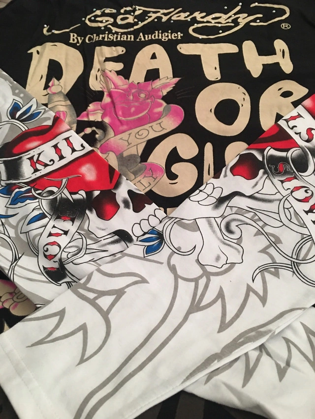 20This Ed Hardy T-shirt features a bold 'Death or Glory' design by Christian Audigier. Brand new with tags, this eye-catching piece is sure to turn heads with its unique graphics and edgy style. * Brand: Ed Hardy * Design: Death or Glory * Condition: New with tags * Size: Medium If the ad is up, it's still available! Don't miss out on adding this gem to your collection.