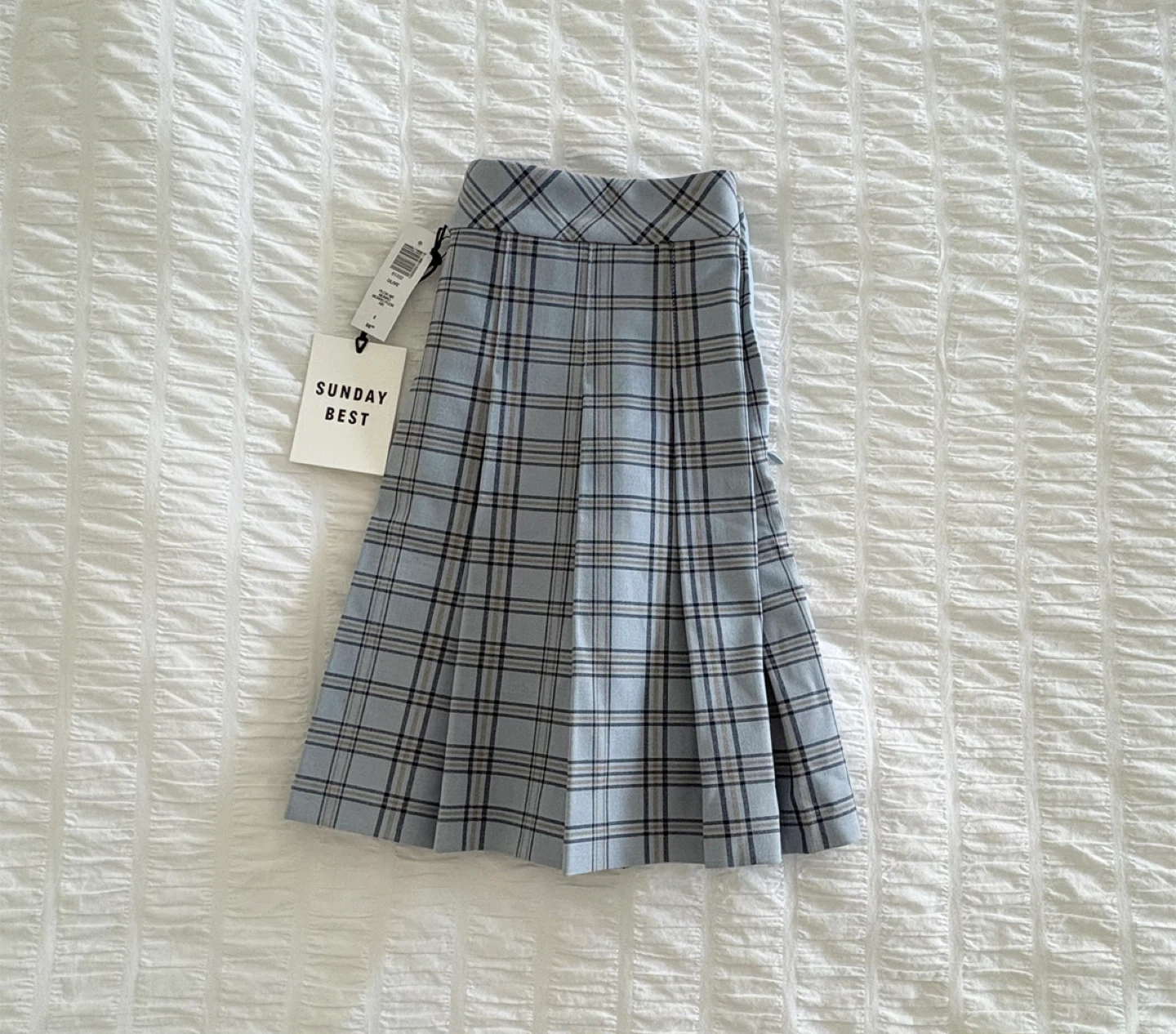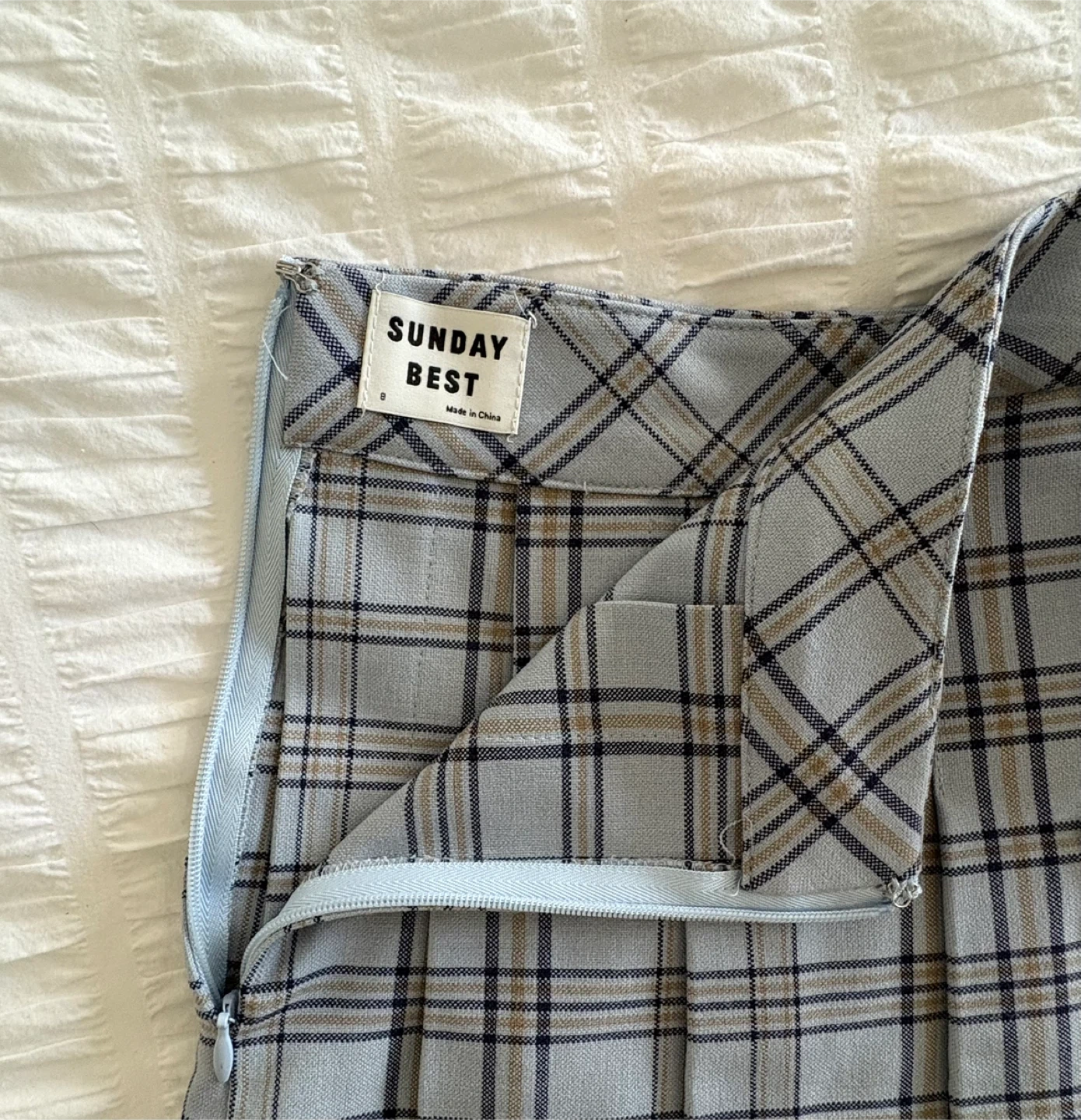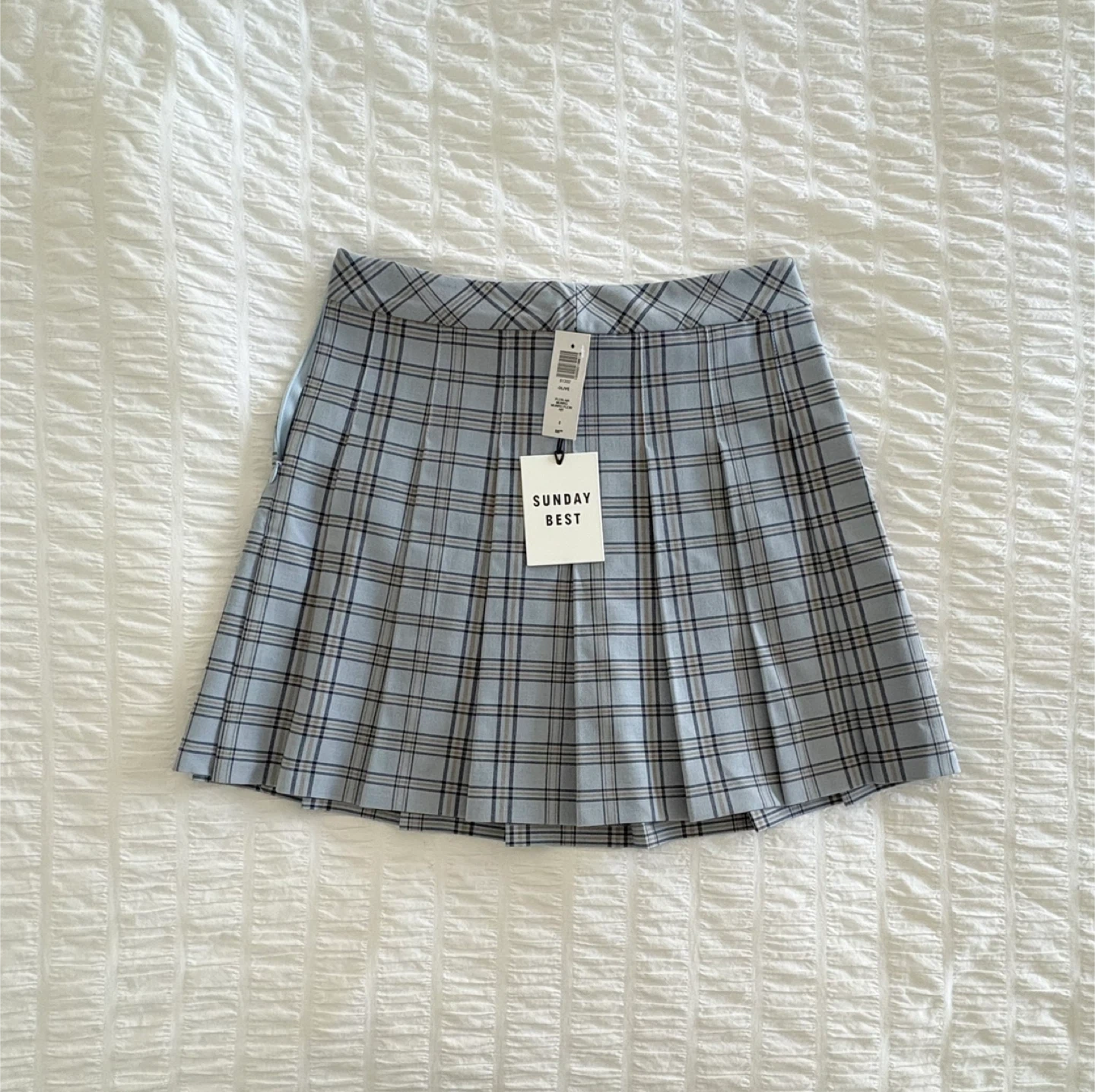 Selling an Aritzia Sunday Best Plein Air Munro skirt in size 8, baby blue plaid coloring! This skirt has never been worn with the tags still attached
