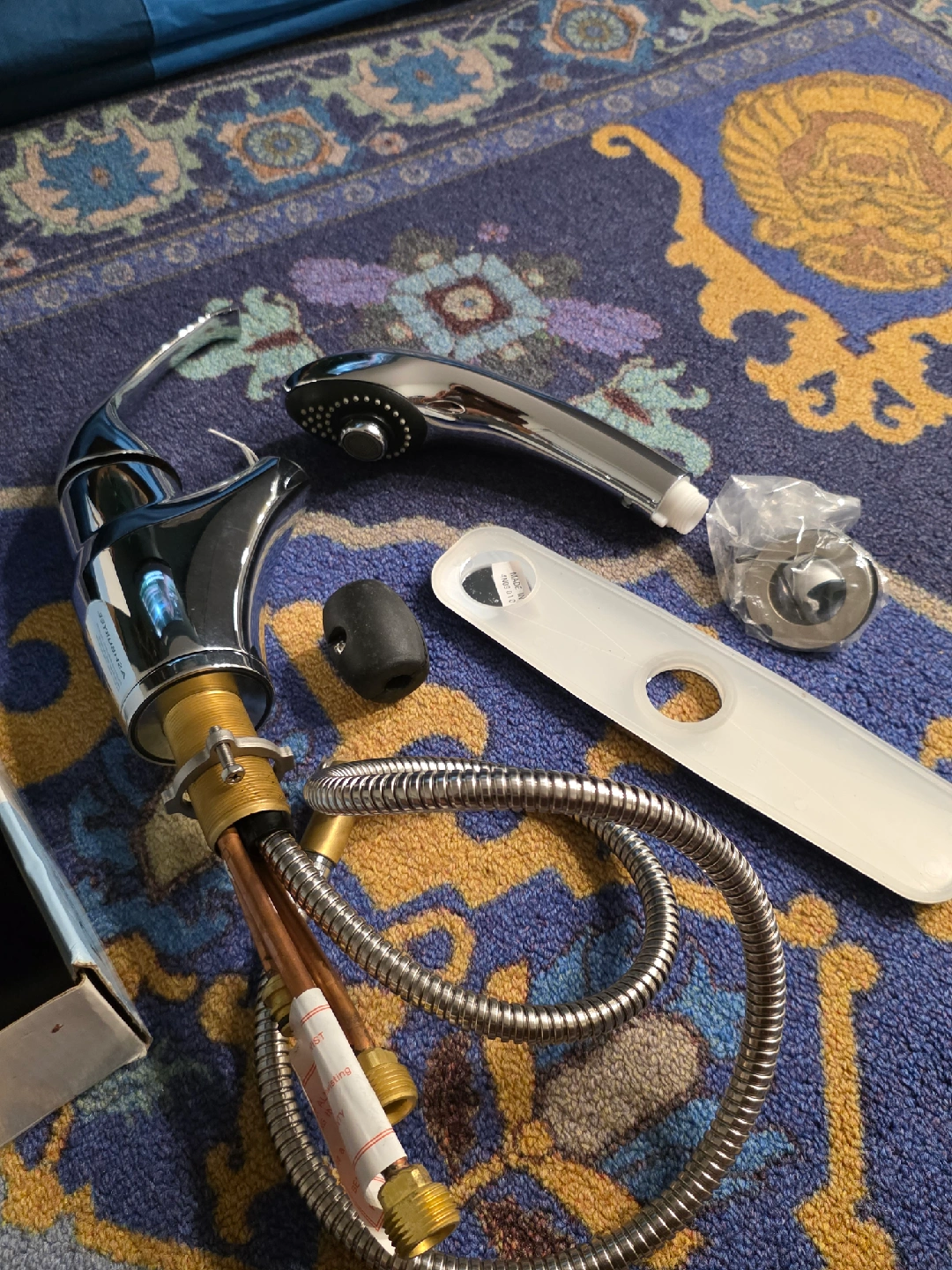 Selling a brand new Danze Ashbury pullout kitchen faucet! It features a ceramic disc cartridge, chrome finish, and a 48" hose. It also includes all the necessary components for installation. This faucet is designed to be durable and stylish, perfect for any kitchen upgrade (taken out of box and plastic to take photos only) never used.