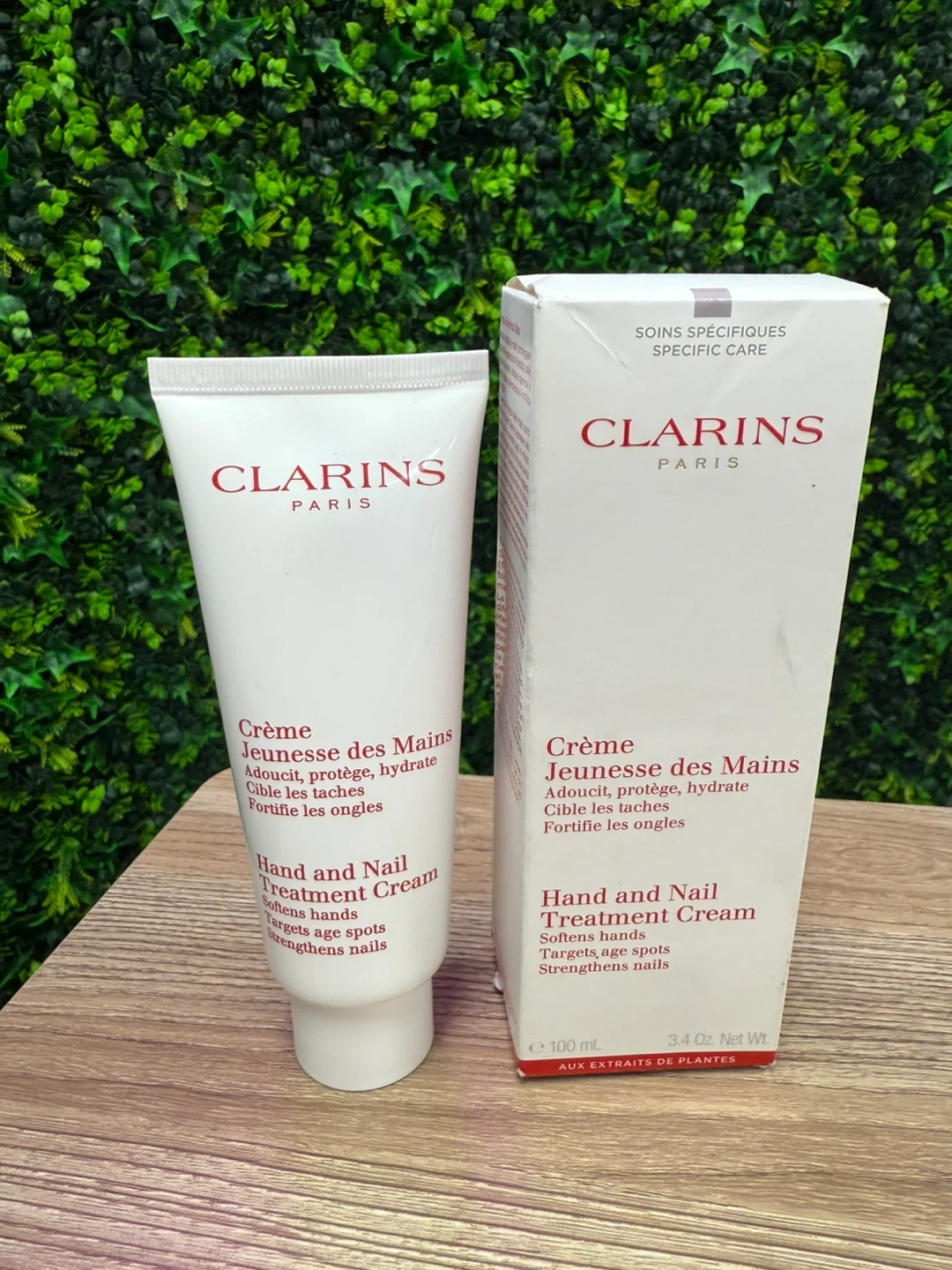 Keep your hands feeling soft and hydrated with this Clarins Hand and Nail Treatment Cream! This cream softens hands, targets age spots, and strengthens nails. It comes in a 100ml tube and includes the box. Perfect for daily use to protect and nourish your hands and nails