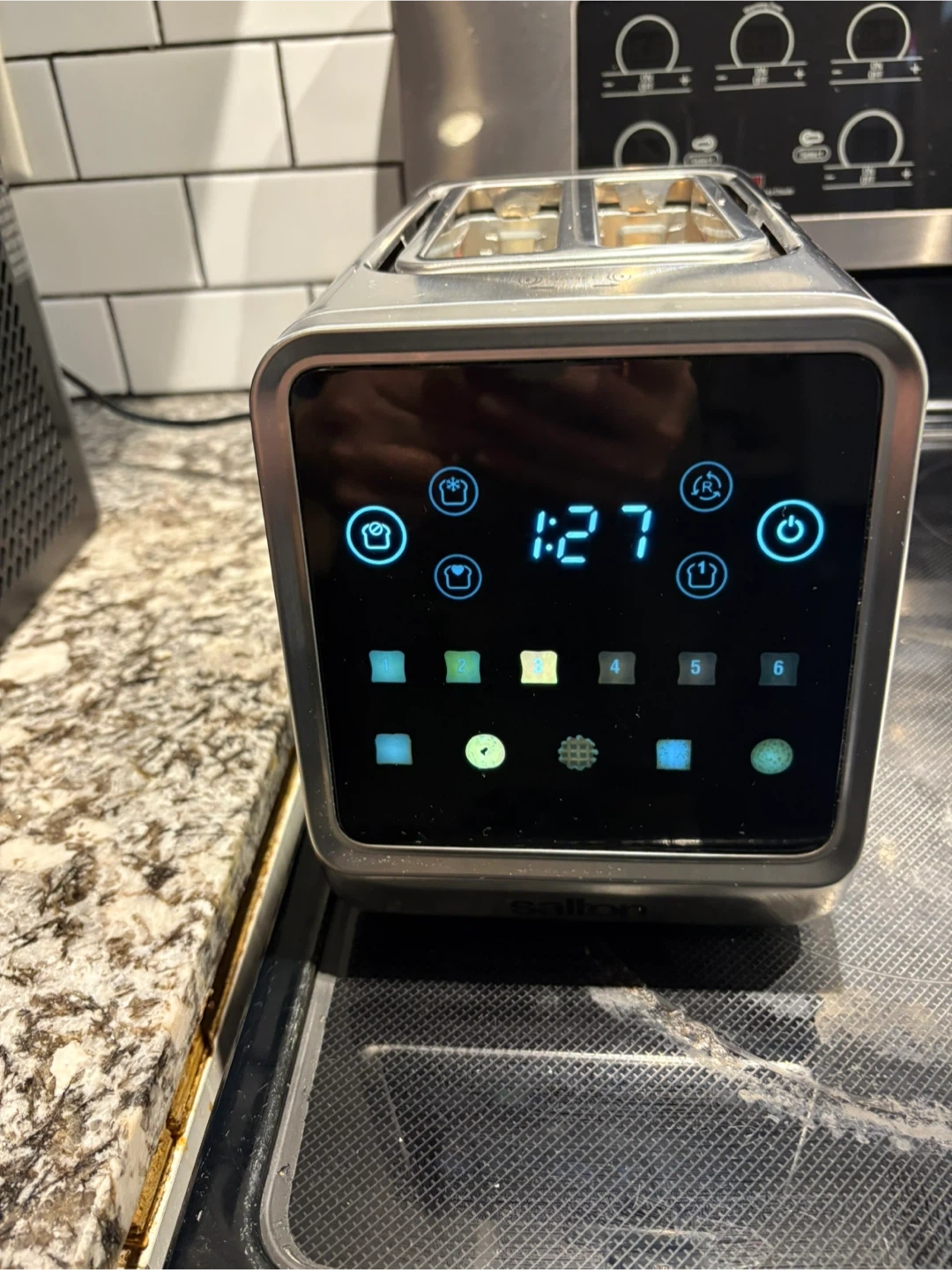 91Selling a Salton touchscreen 2-slice toaster! The model number is ET2151. It's in great shape and ready for a new home. It has a sleek touchscreen interface for easy toasting. It also has a bagel function! As well as a waffle setting and frozen setting!