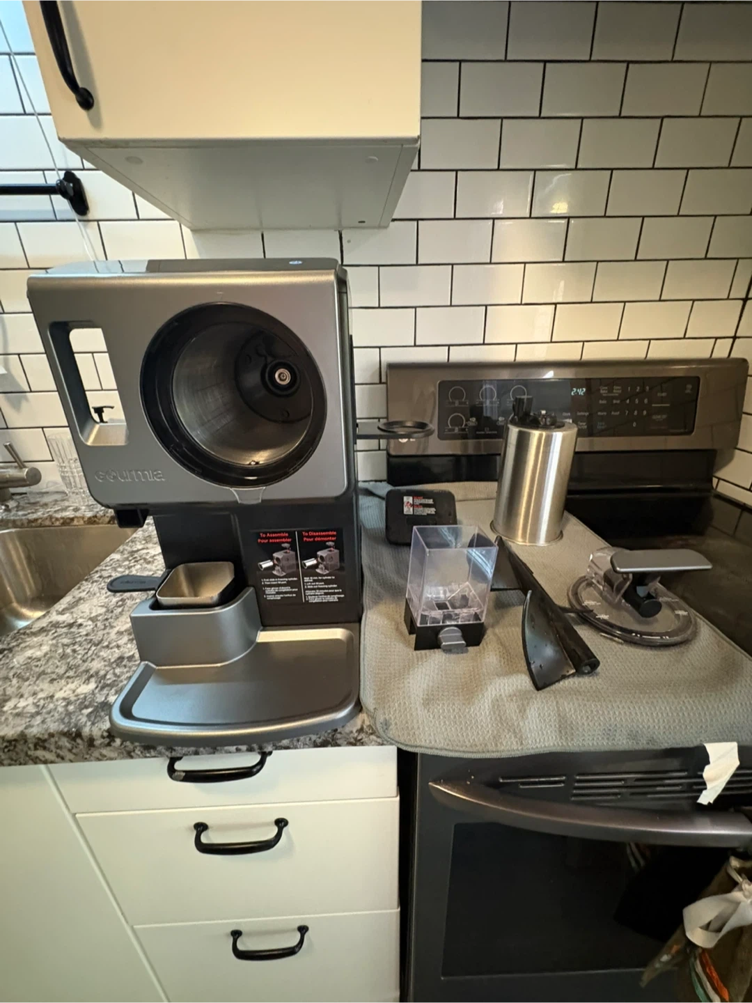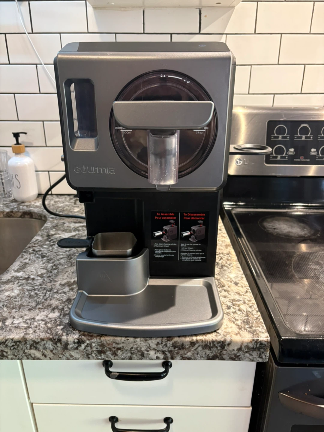 Get ready to whip up some delicious frozen treats with this Gourmia frozen dessert maker! It's in great condition and comes with all the components you see in the pictures. Originally bought for $269.99, this machine is perfect for making ice cream, sorbet, and more right at home