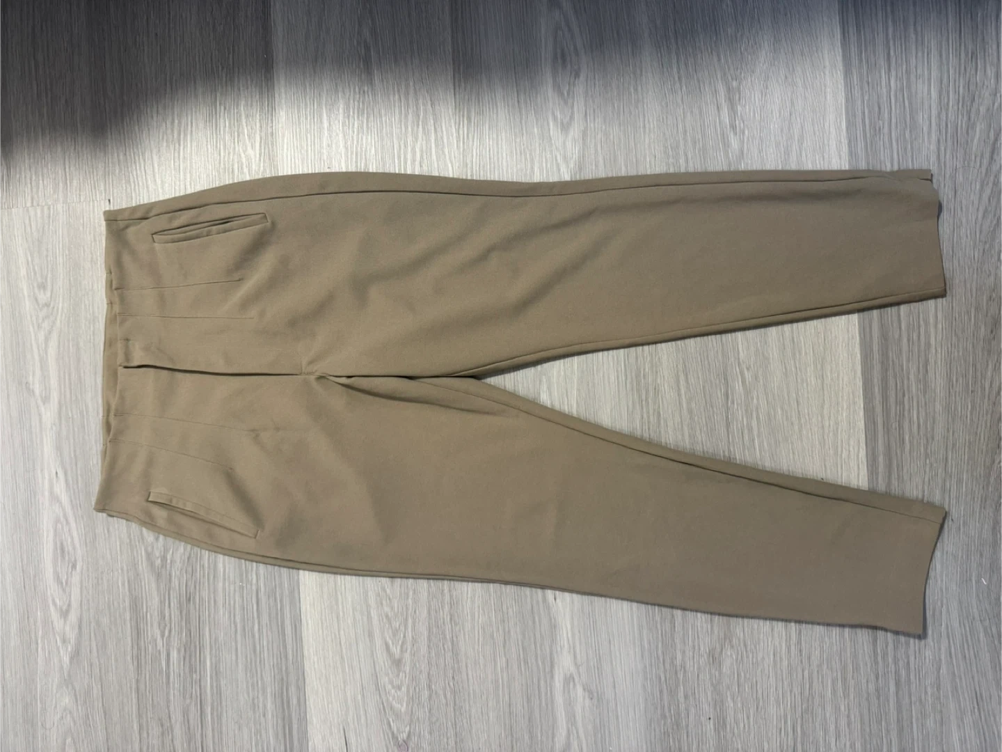 Selling a pair of light brown dressing pants in black and white. They are brand new never worn because I have a lot (check my listings) selling because I don’t work at a professional setting so don’t need them. This is in a large it doesn’t tell me exact measurements. Perfect for any occasion just style it up with a nice shirt. Message me if interested!