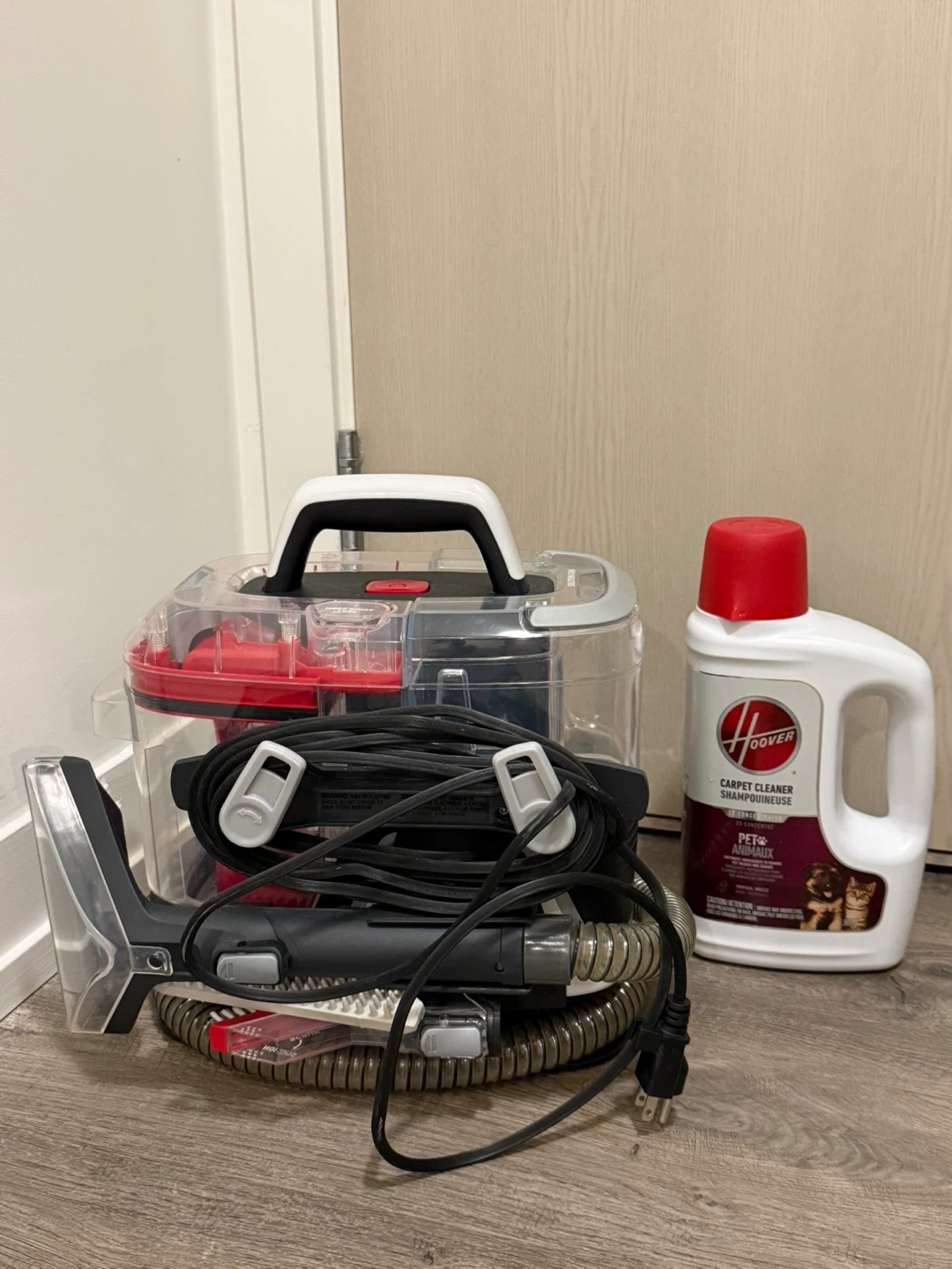 Selling a Hoover carpet cleaner, perfect for getting those carpets fresh and clean! It comes with a bottle of Hoover carpet cleaning solution specifically designed for pet stains and odours. Great for any home with furry friends