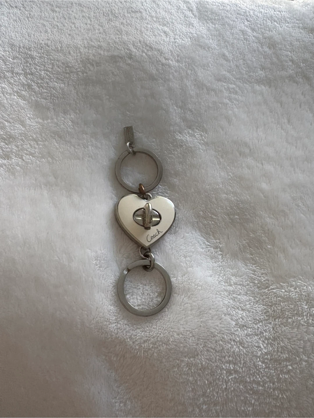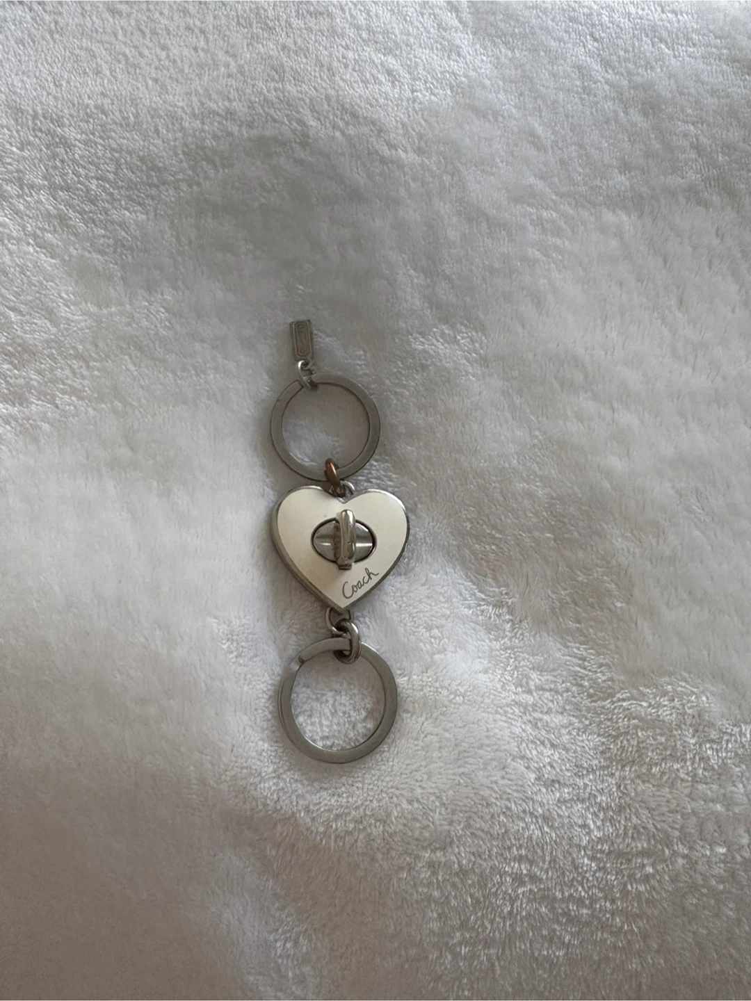 Coach Heart Shaped Kiss Lock Double Keychain – Creamy White & Silver