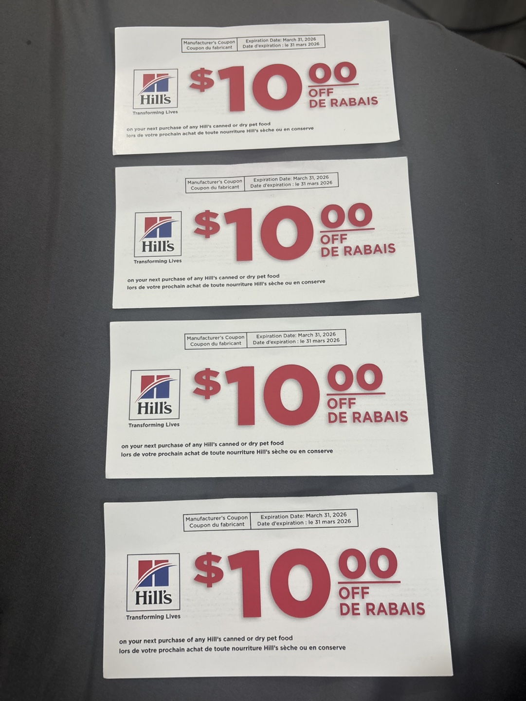 I have a Hill's coupon for $10 off your next purchase of any Hill's canned or dry pet food.