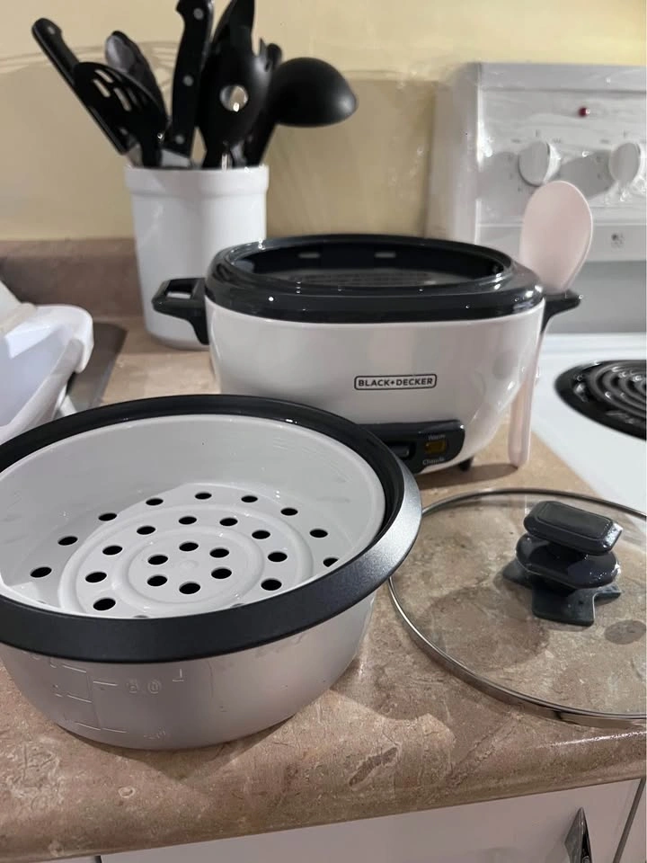 MOVING SALE! Like new Black & Decker Non-Stick Rice Cooker & Steamer White, 6 Cups It comes in box, full set with steam plate, spoon and measuring cup Pick up only at Steeles Ave E & Birchmount Rd.