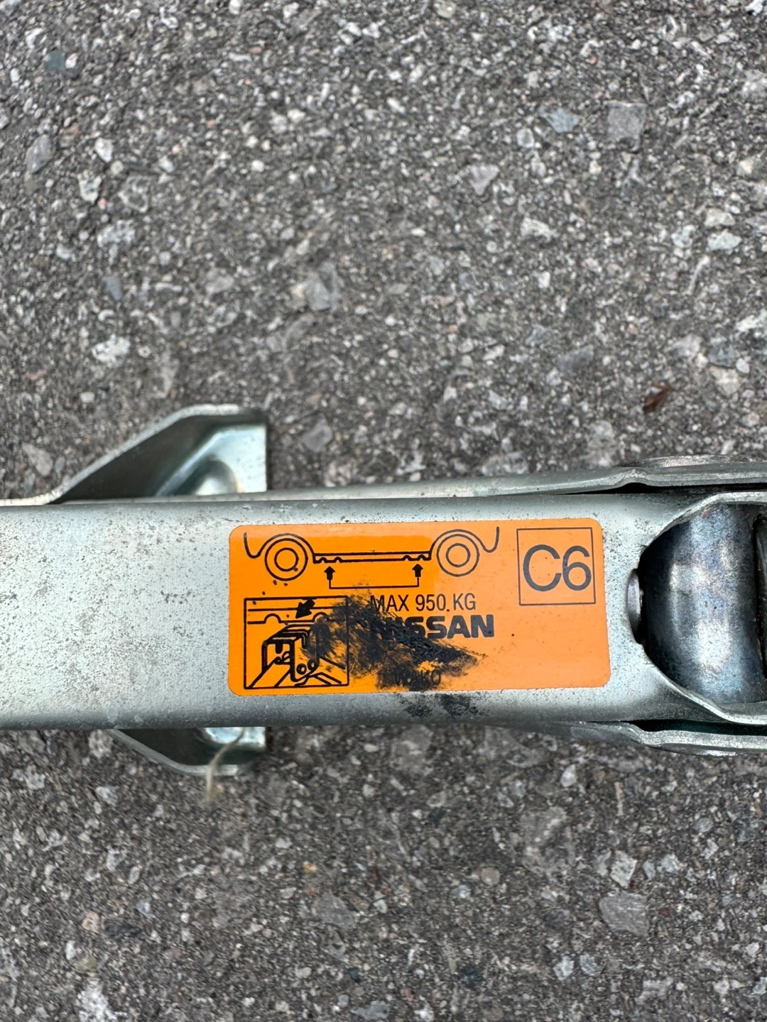 Selling a Nissan car jack. It's in used condition but still works great! The jack has a maximum weight capacity of 950 kg. Perfect for your Nissan vehicle or other compatible cars
