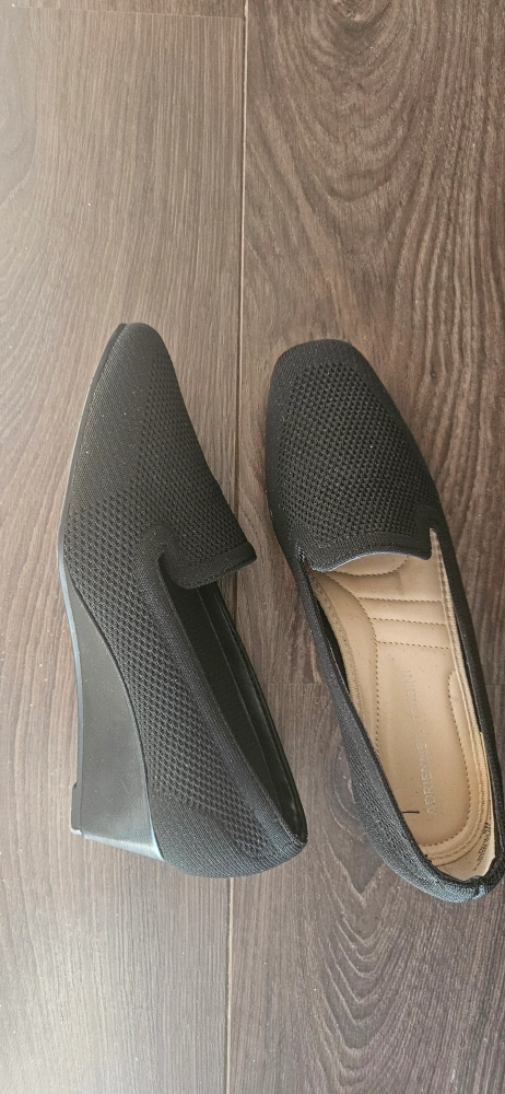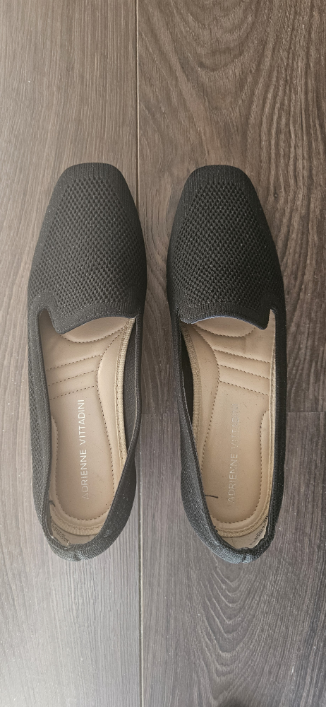 Cute and comfy black wedge loafers from Adrienne Vittadini! These are a size 7.5M and feature a stylish wedge heel. Perfect for adding a little height while staying comfortable.