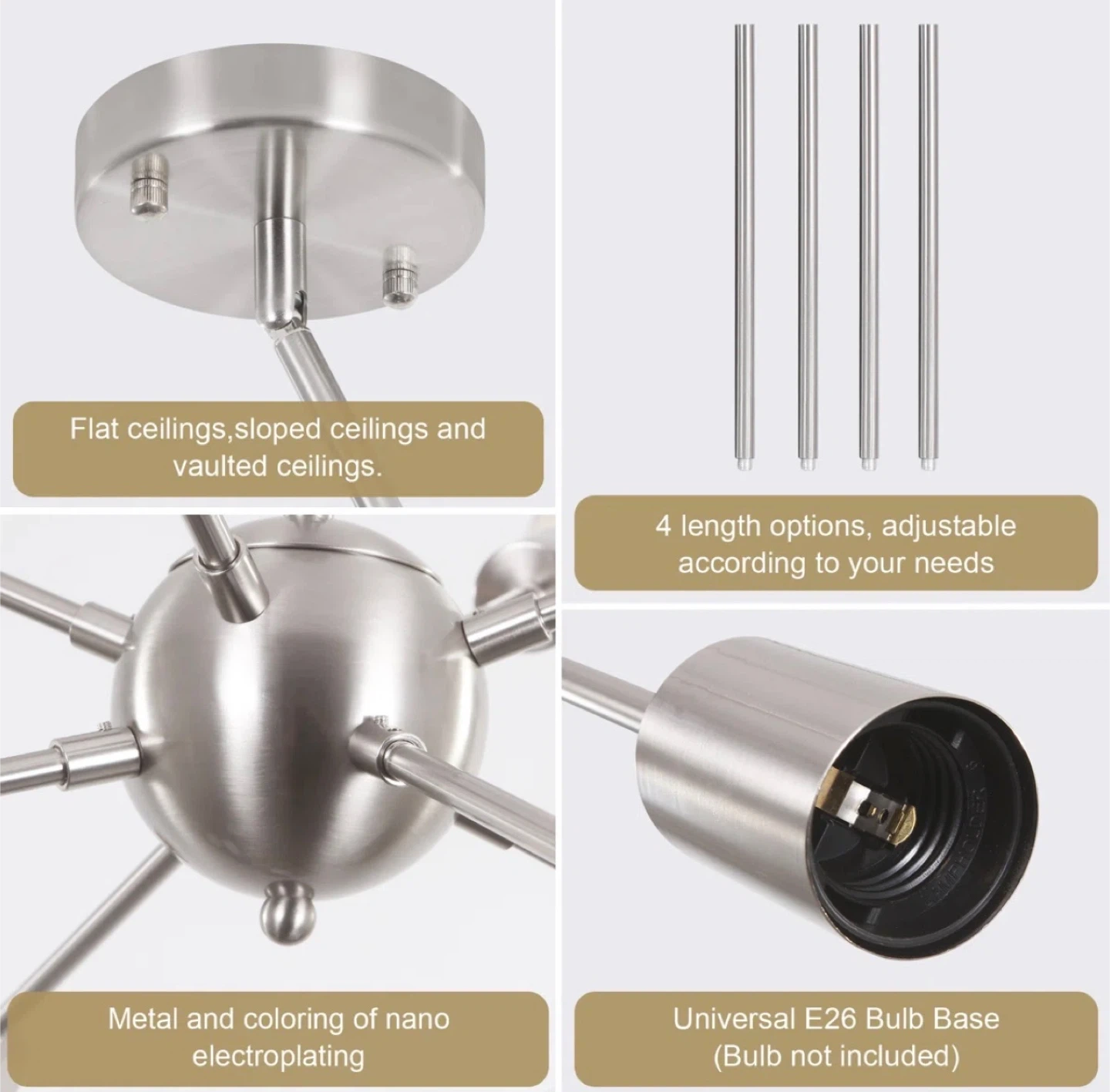 Add a touch of modern elegance to your home with this stylish Sputnik chandelier! It features adjustable height settings from 17.3 inches to 52.8 inches, allowing you to customize the lighting to perfectly suit your space