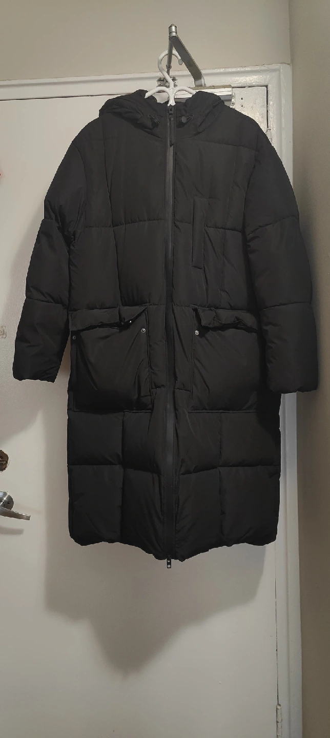 215Selling a cozy black puffer coat! It's in great condition and perfect for those chilly Canadian days. It has a hood and pockets to keep you extra warm and snug