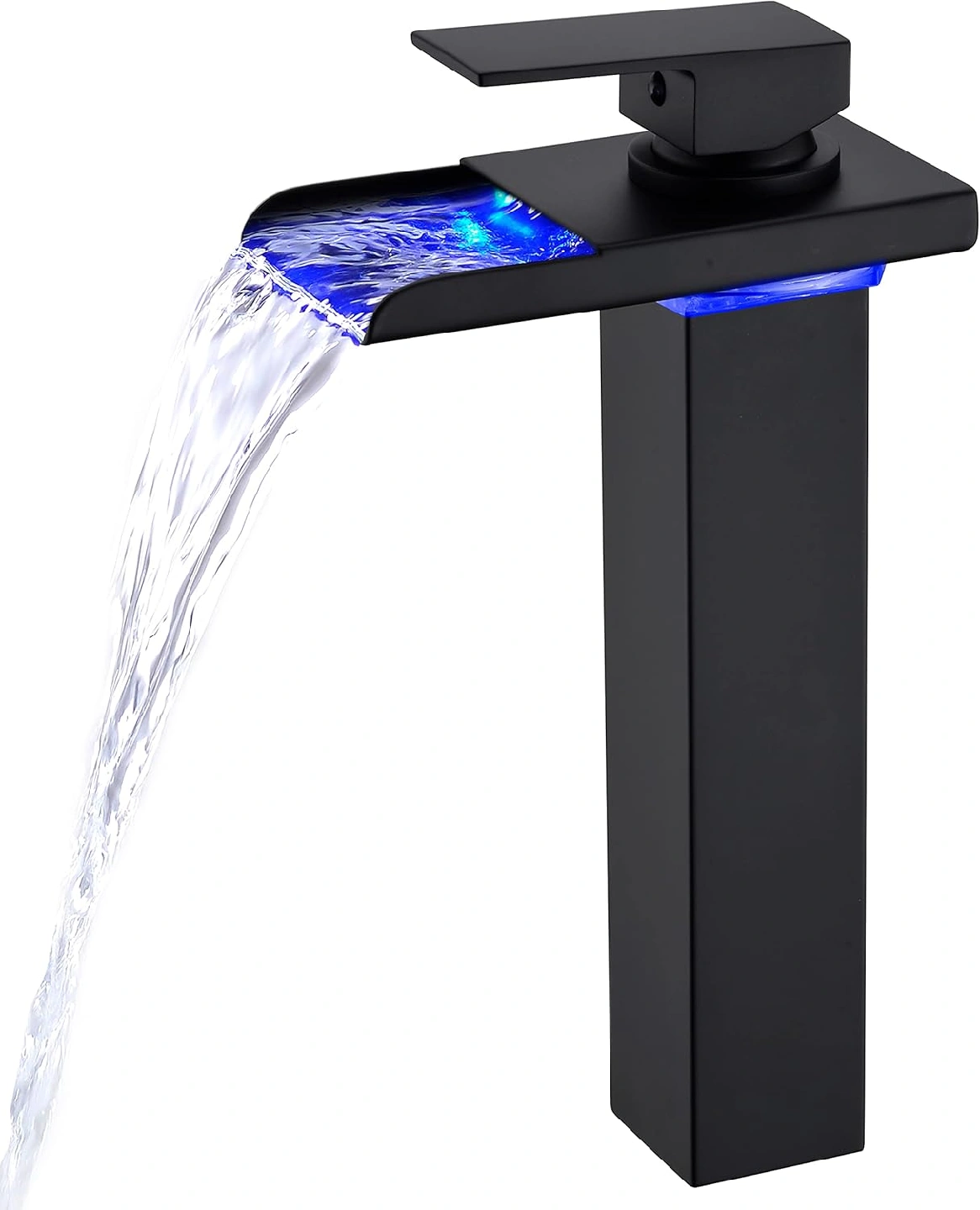231Brand new matte black bathroom vessel waterfall faucet for sale. LED waterfall light based on water temperature, single hole, single handle, $50 FIRM. faucet, water, reno, vanity, counter, water, bathroom, sink, renovation, hose, plumbing, kitchen, drain, shower, tub, bath, bathtub, swivel, pull down, pull out, spray, nozzle, handle, Moen, Delta, dishes, column, tower, massage, jets, LED, temperature, valve, rainfall, waterfall, wand, spout