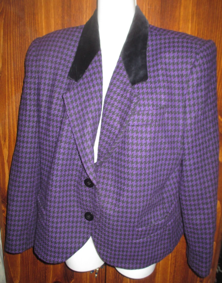 Selling a purple and black houndstooth blazer! It has a black velvet collar. This blazer would be a great addition to any wardrobe! pickup in Astoria Queens