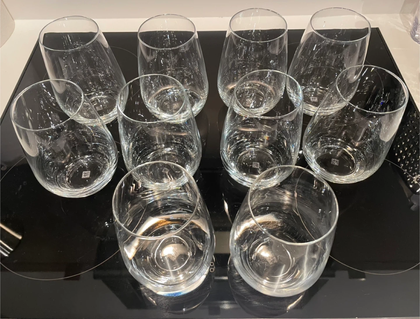 277Selling a set of 10 Zwilling glasses. These glasses are perfect for keeping your drinks at the right temperature, whether it's a hot coffee or a cold beverage. They're in great condition and ready for a new home!