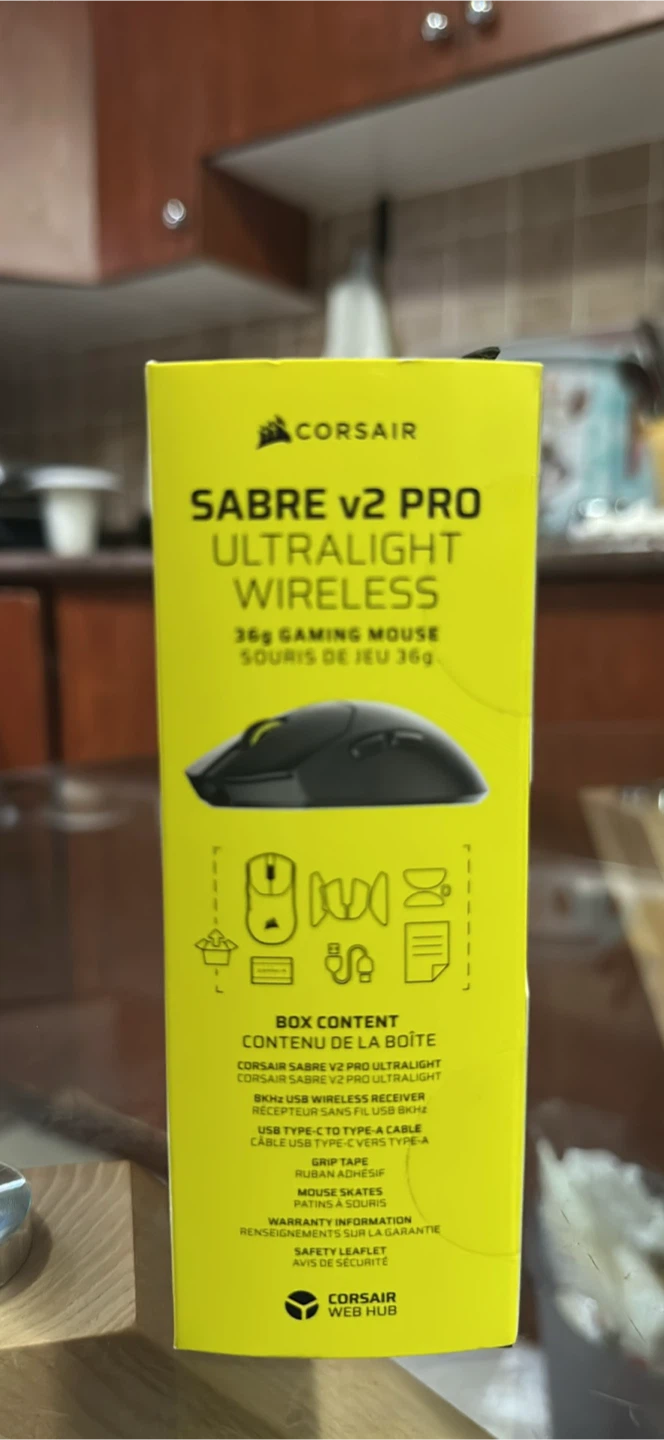 Selling a brand new Corsair Sabre V2 Pro Ultralight Wireless mouse! It's a 36g gaming mouse and includes the box contents: