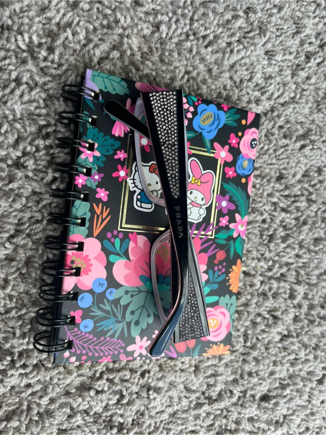 Selling a pair of Prada eyeglasses! They feature a sleek black frame adorned with rhinestones. The temples are a light purple. They're in great condition and ready for a new home!