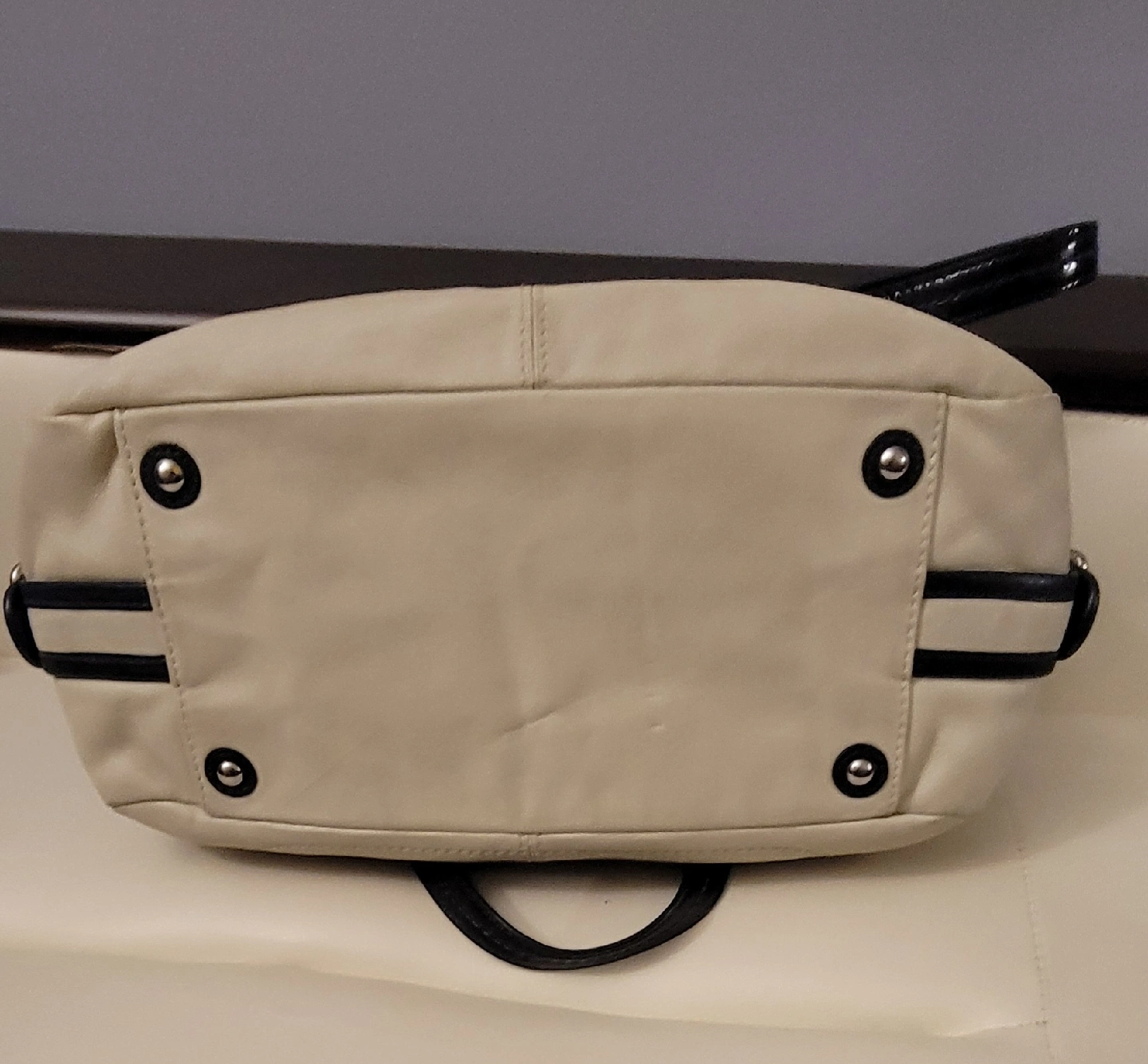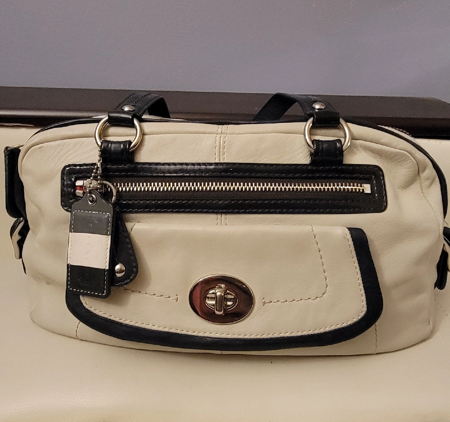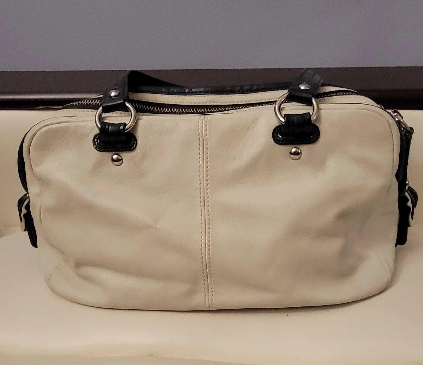 Selling a stylish Coach handbag in cream and navy blue leather! It's in great shape and ready for a new home. Perfect for everyday use or a night out