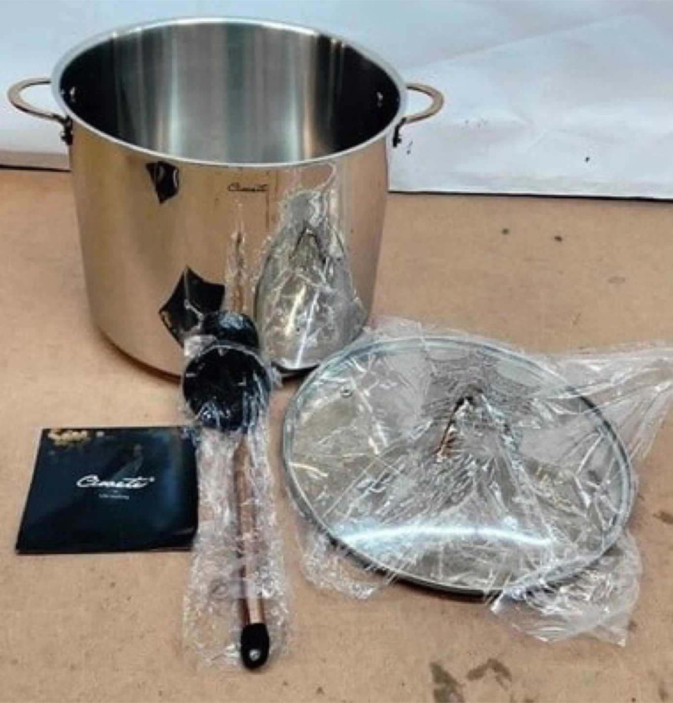Selling a heavy Ciwete 20 Quart Stock Pot! It's made of 3-ply stainless steel and comes with a lid. It also features copper handles and is safe for induction, oven, gas, and dishwasher use. More details in the last pic. Pick up near Brampton /Caledon border