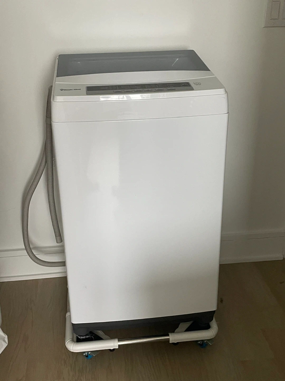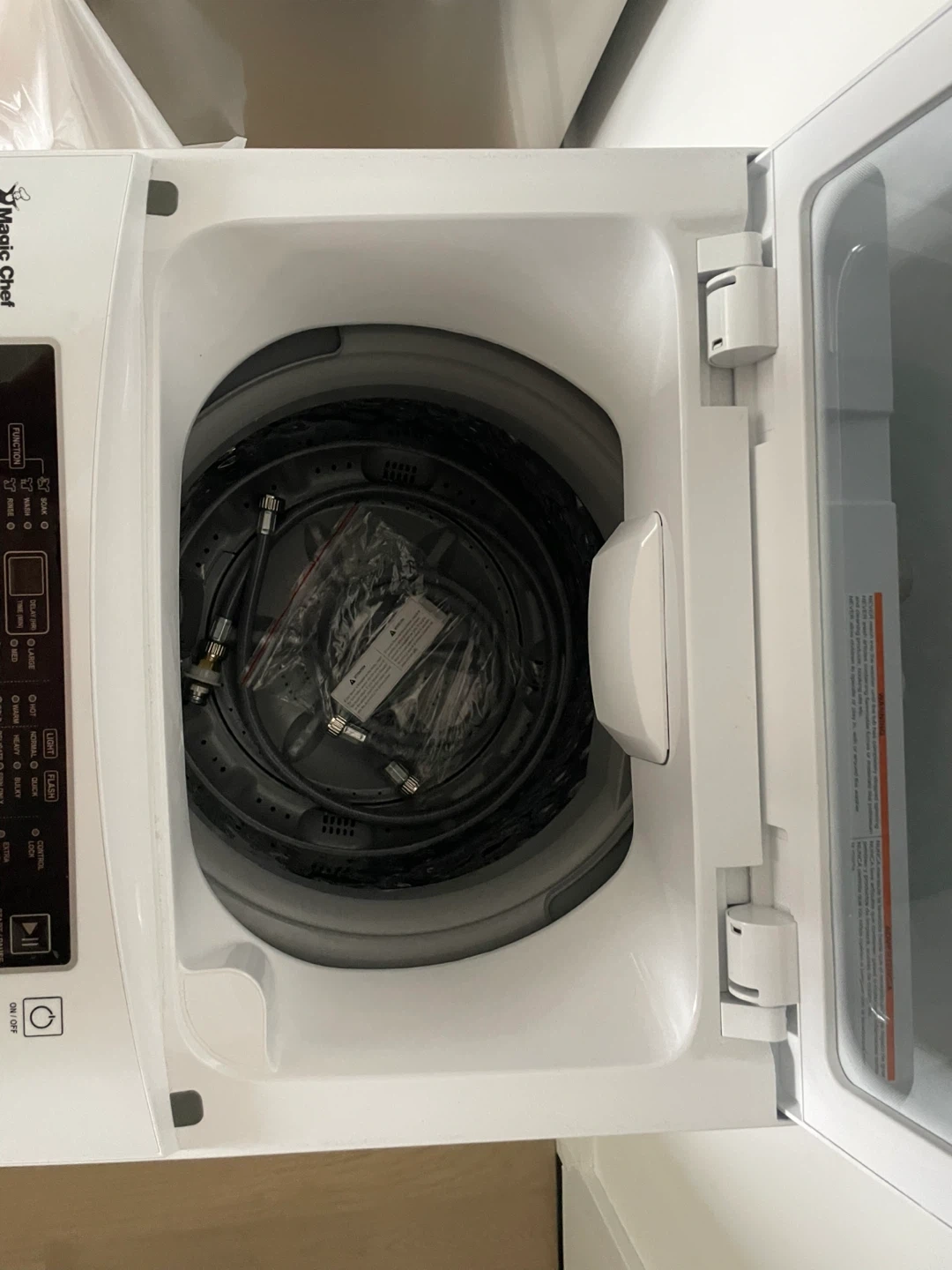 Selling a Magic Chef portable washing machine. It's barely been used and perfect for apartments or smaller spaces. It's white and comes with all the necessary hoses for hookup to your tap! Super space efficient, and can fit up to king sized bed sheets in a load! Originally 300 dollars I’ll give you the dolly for free so you can easily move it to your place and also so you can roll it around your apartment.