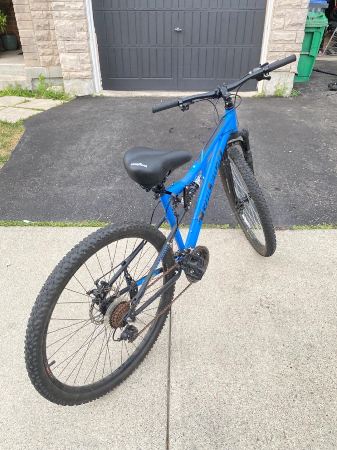 41Selling a Raleigh Tora 2.0 mountain bike in blue! It looks like it's in great shape and ready for some trails or just cruising around the neighbourhood. Perfect for anyone looking for a reliable ride.