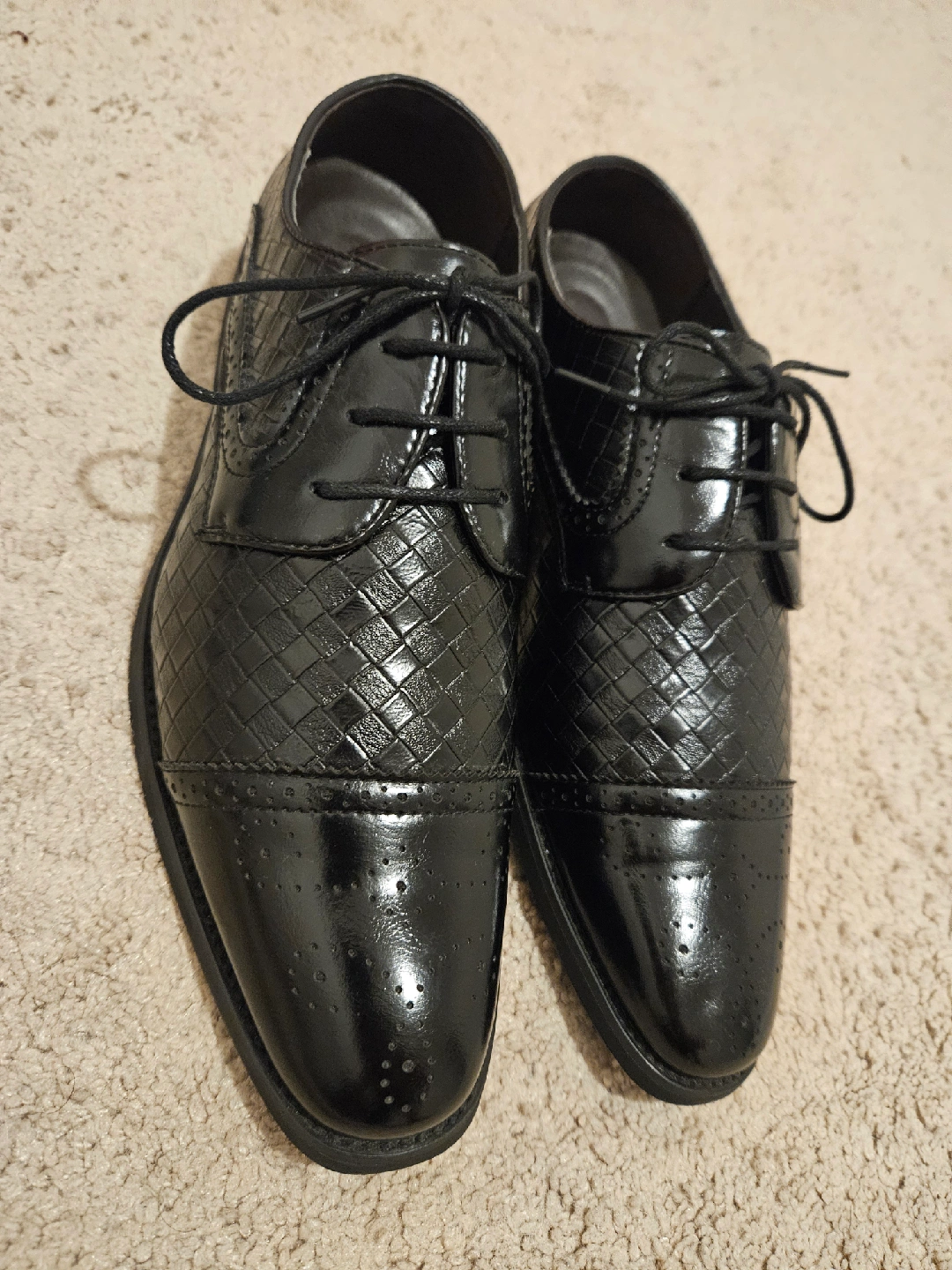 143Selling a pair of black dress shoes in great condition. They are size 12 and have a classic design. Perfect for any formal occasion!