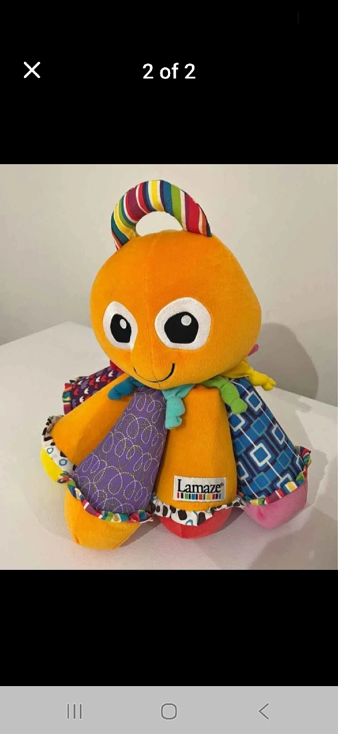 This adorable Lamaze musical octopus is ready for a new home! It's in great condition and features bright, engaging colours and patterns. Perfect for sensory development and playtime for your little one