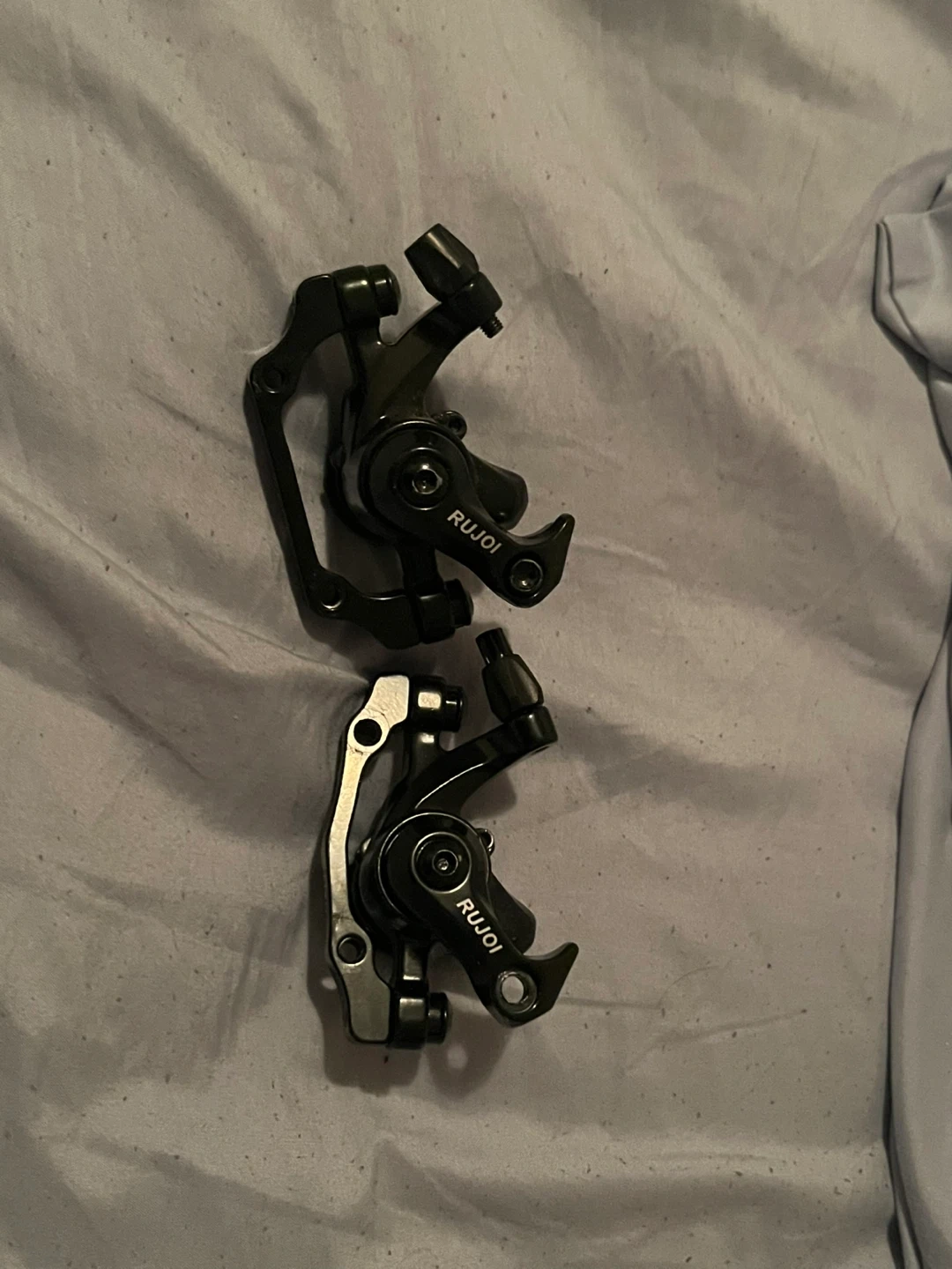 44Selling a set of RUJOI bicycle disc brakes in black. They appear to be in good condition and ready to install on your bike! Perfect for upgrading your current brakes or for a new bike build