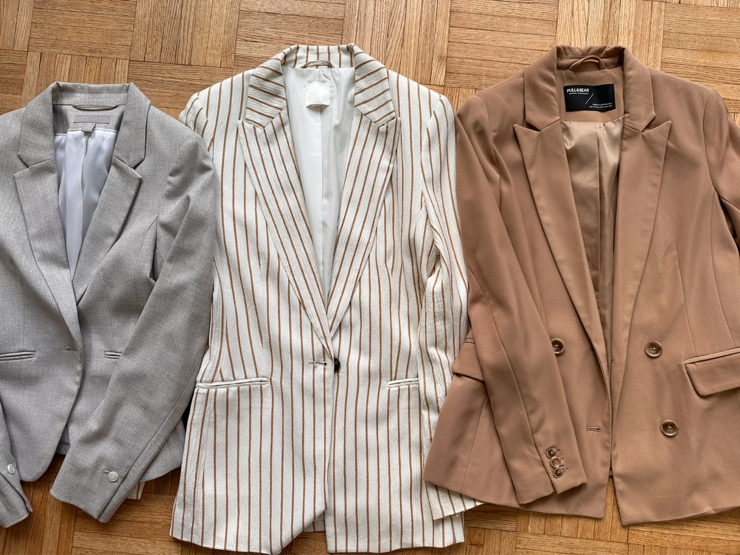 MOVING SALE NEVER USED Selling a set of three blazers in great condition! Includes a beige blazer from Pull&Bear, a striped blazer from H&M, and a light grey blazer from H&M. Size XS-S Selling all together Pick up near Yonge and Bloor