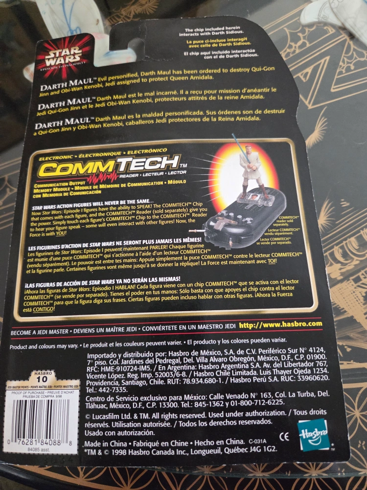 Selling a Star Wars Episode 1 Darth Maul action figure. It's still in its original packaging. The figure has a COMMTECH chip. Made in China. A great collectible for any Star Wars fan!