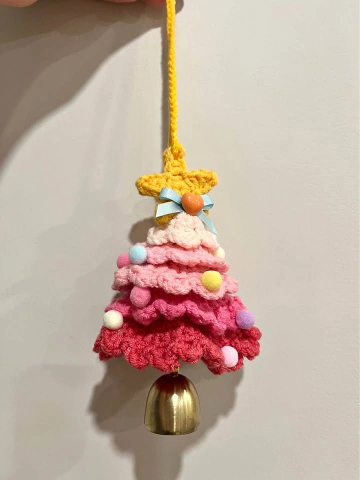 Adorable crocheted Christmas tree ornament with a metal bell 🎁 Perfect for adding a warm holiday touch to your Christmas tree, car rearview mirror, kids’ party, or gift bag.