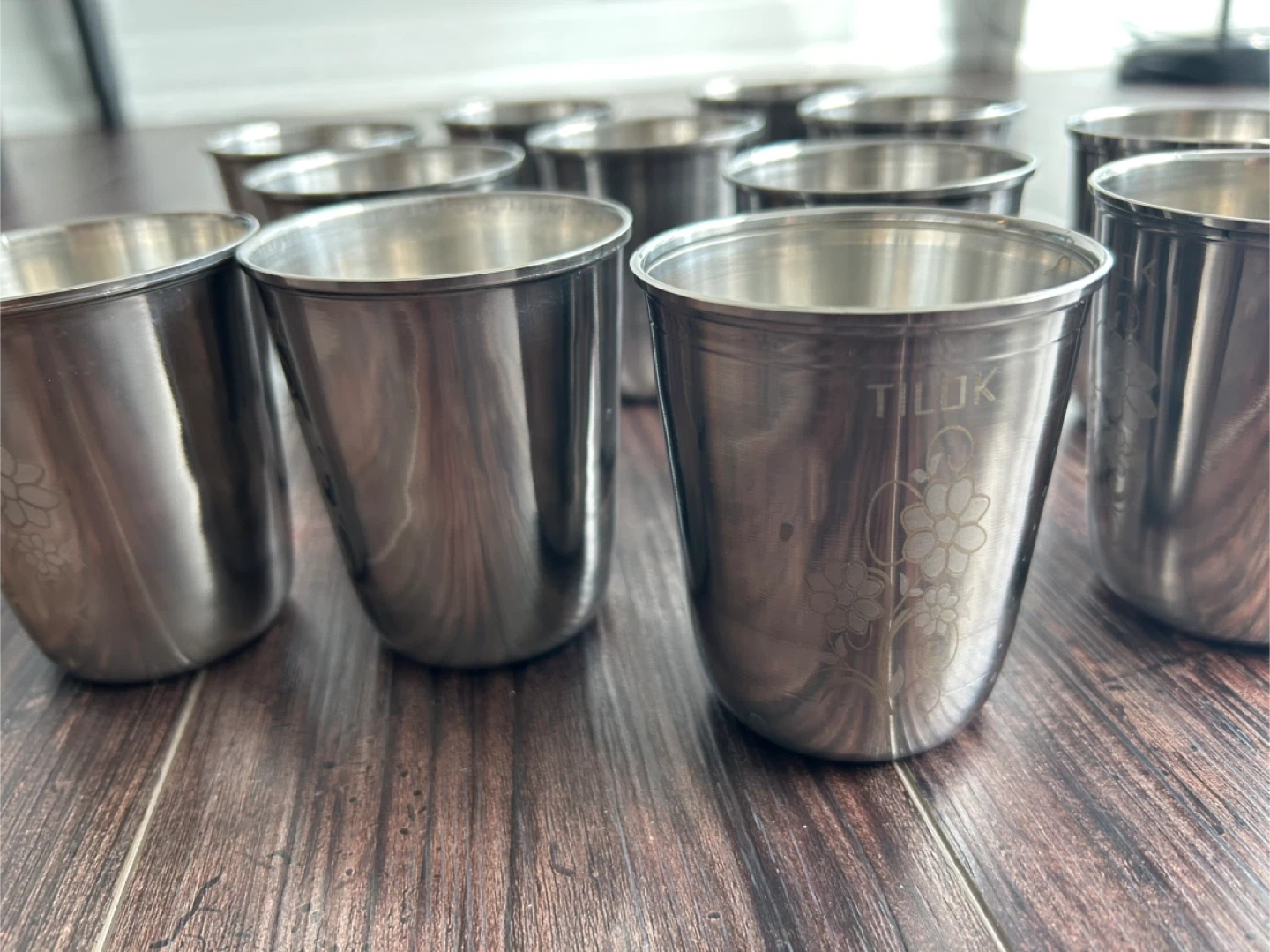 52Selling a set of 12 TILUK stainless steel glasses. These glass are in great condition and perfect for juice, water, or any beverage. They have a nice, simple design and are easy to clean. Add a touch of elegance to your table setting with these durable and stylish cups!