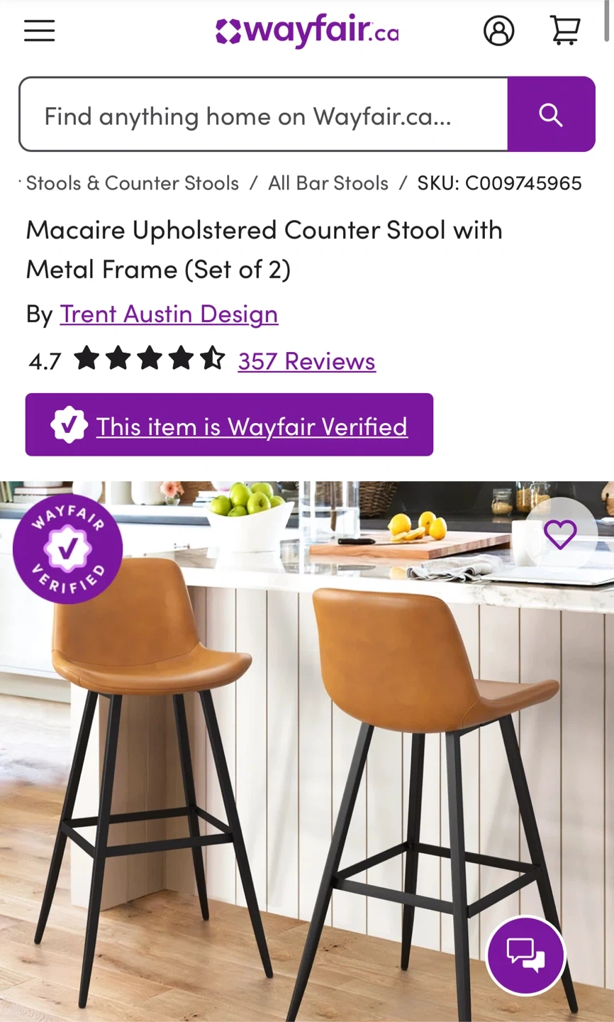This 2-piece stool set brings a contemporary and industrial touch to your kitchen island or home bar. Each stool features a low-backed bucket seat with clean lines and a modern, minimalist style. The frames are made from iron with a neutral finish, while the foam-filled faux leather upholstery offers a comfortable and eye-catching seating option. We love that they come with plastic glides to protect your floors from scratches and that they're also water-resistant for holding up to everyday splashes.