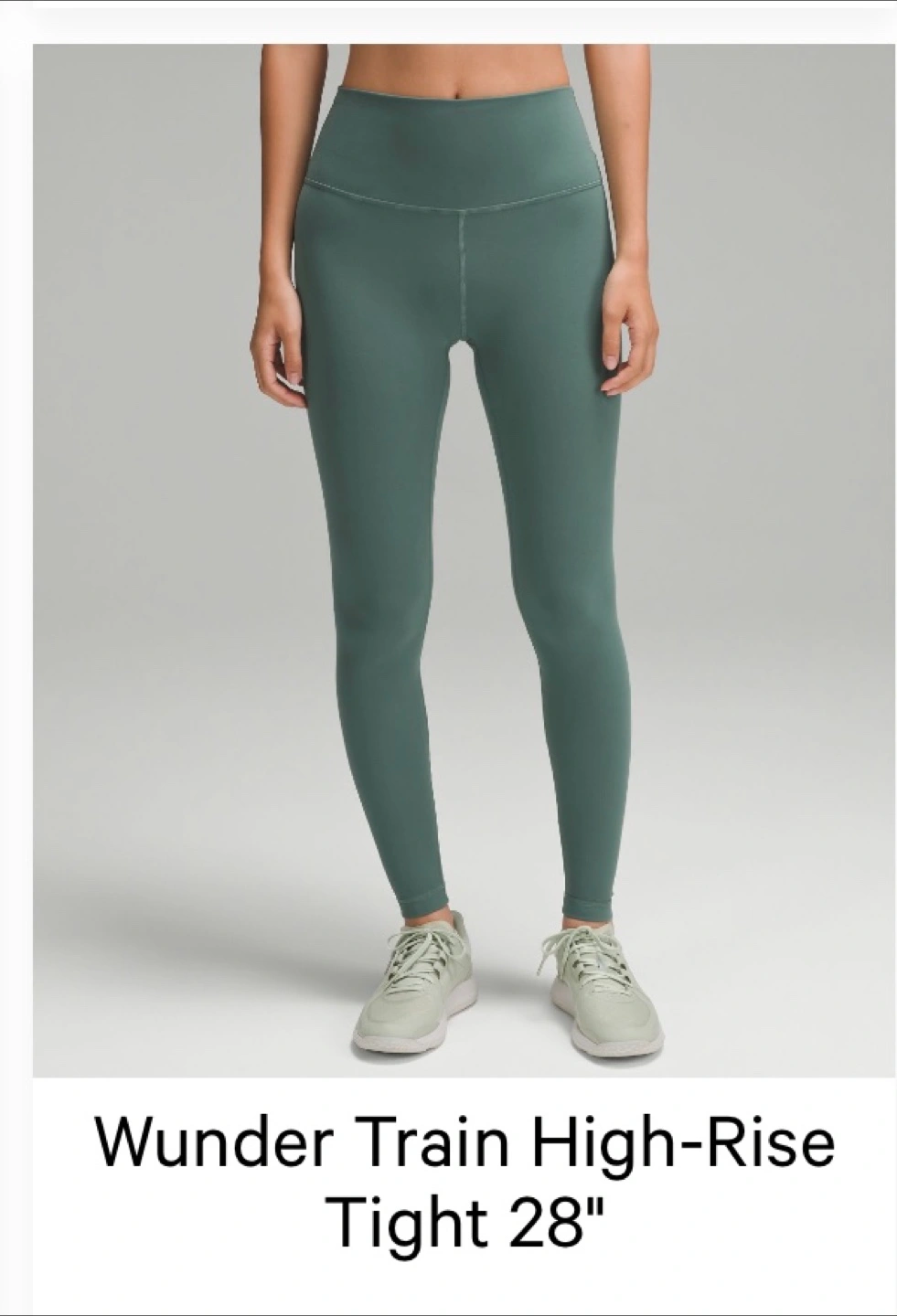 Selling a pair of Lululemon Wunder Train High-Rise Tights in a lovely green shade! 28" length Barely worn