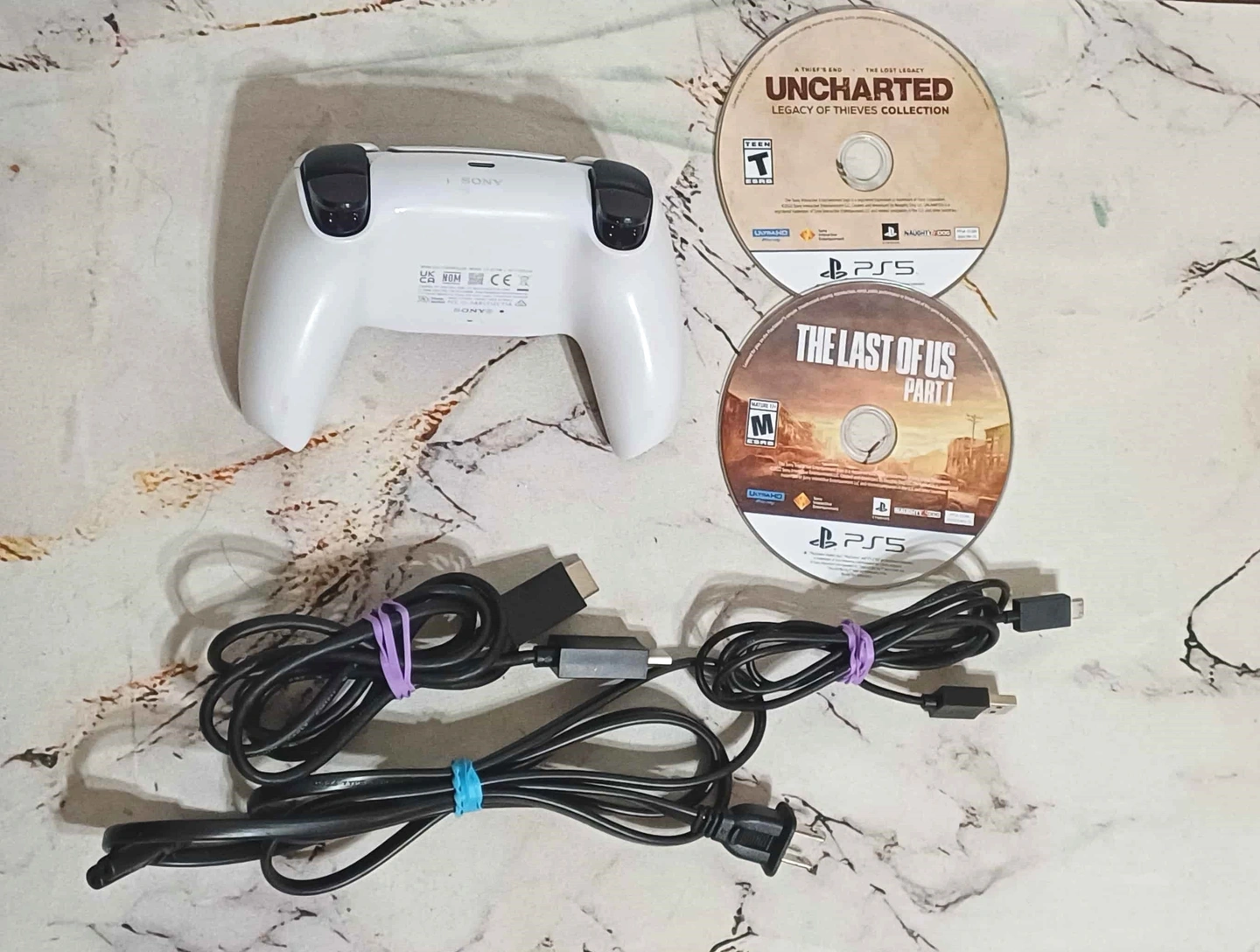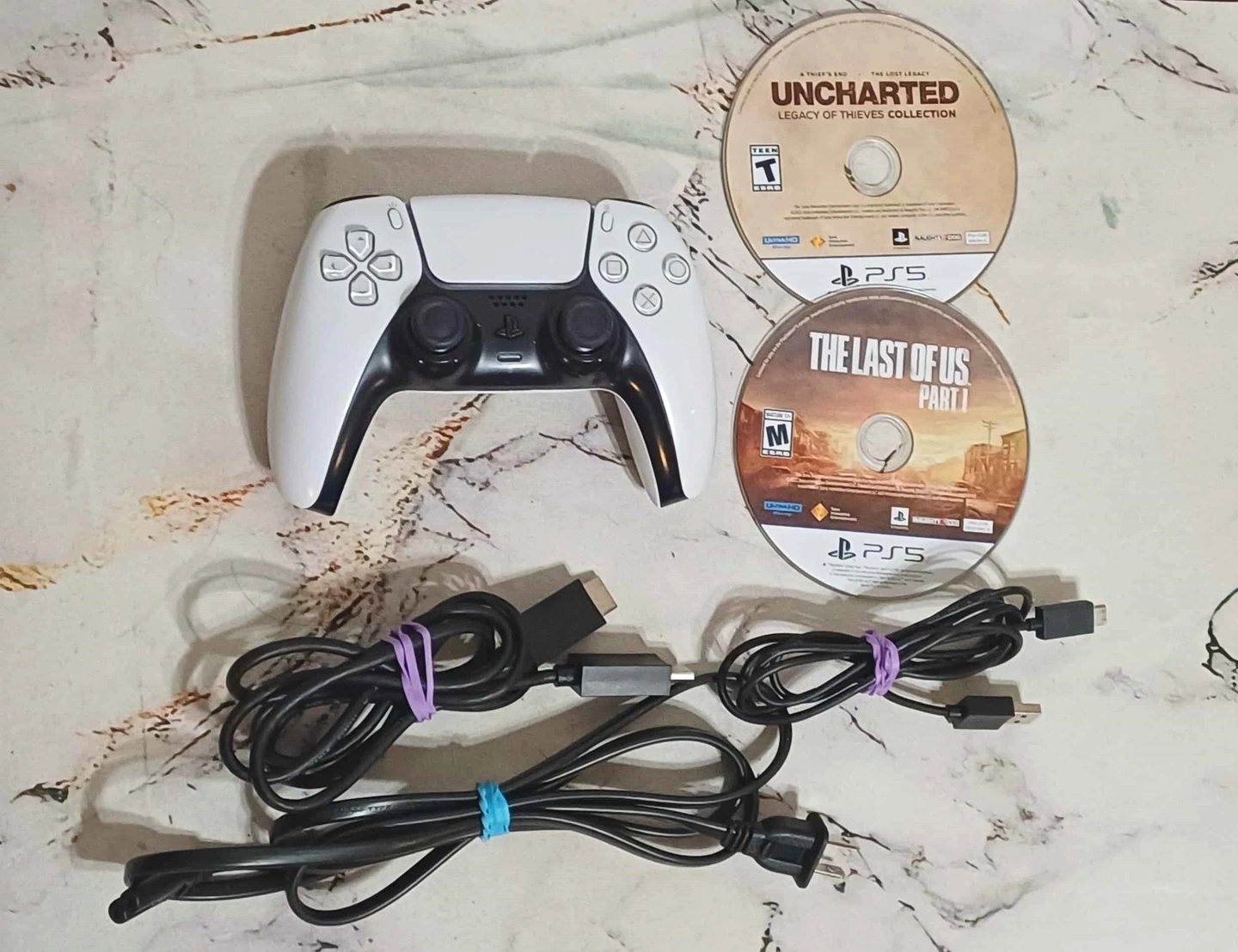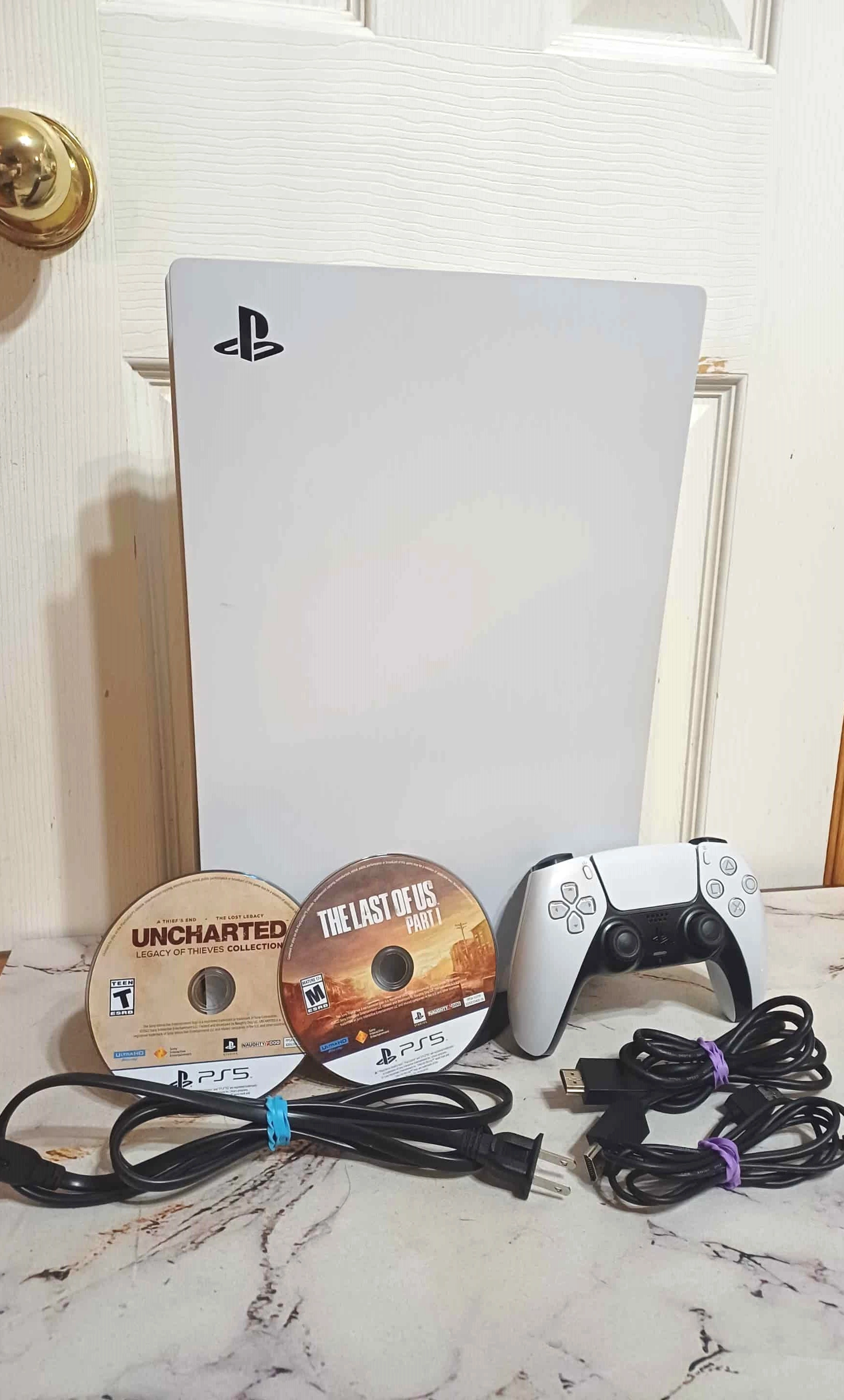 41π PS5 + Controller + All Cords and Games βοΈ Included: π§© PS5 Original Designed Console π§© PS5 Controller and Controller Charging Cable π§© HDMI and Power Cable π§© PS5 Games: - Last of Us Part 1 - Uncharted Legacy of Thieves Collection π Notes: π PS5 is Clean and Great Condition β Factory Reset and Ready for the Next User πΉ 825 GB storage (Many Games to Store) β¨ Games are tested and works + Controller does not have any movement issues as well as stick drift β------------------------------------------ π₯ Check my other listings for More+ β Cash or E-Transfer accepted π Pickup in Harvest Hills NE π¬ Fast replies β message me to claim your item!