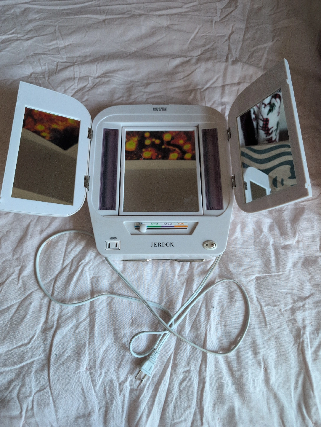 Selling a Jerdon Style lighted makeup mirror. It has settings for office, evening, and home lighting. Great for doing your makeup for different types of lighting. 🏮💡☀️