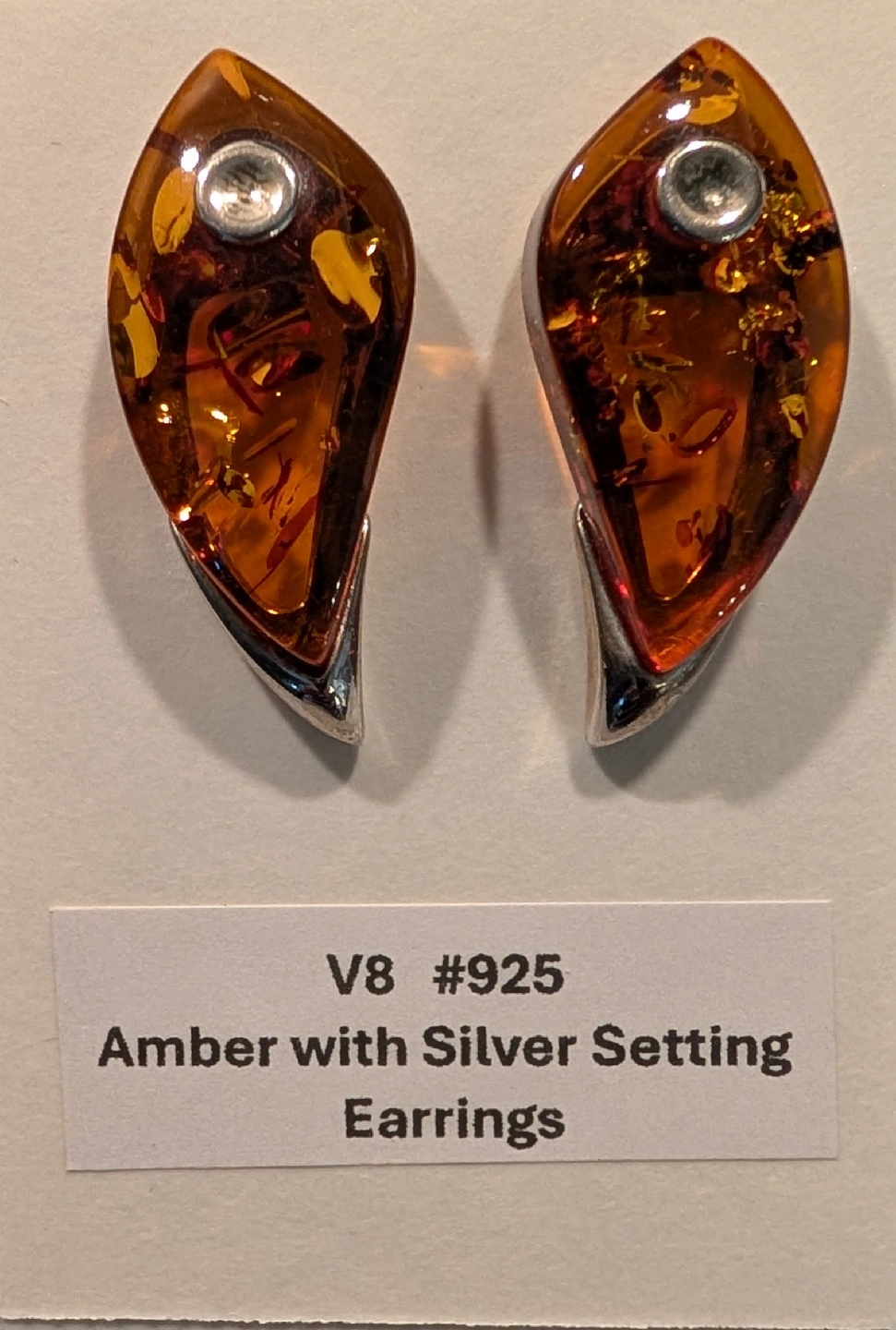 261Amber earrings with silver setting for pierced ears Made in Poland V8 piece #925