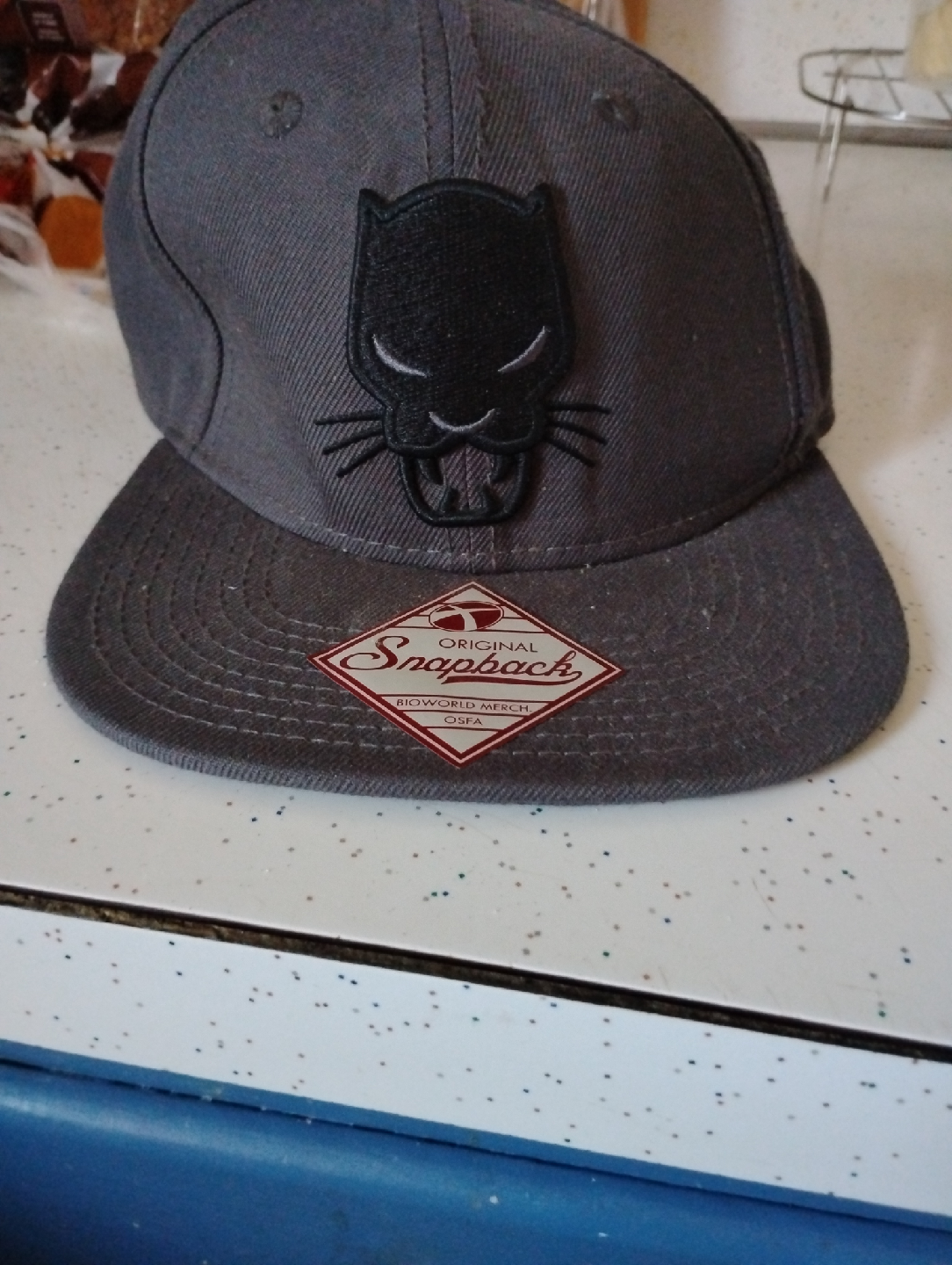 Selling a Marvel Black Panther snapback hat in great condition! It's a one-size-fits-all (OSFA) hat. The material is 85% acrylic and 15% wool. A stylish way to show off your love for the Black Panther!