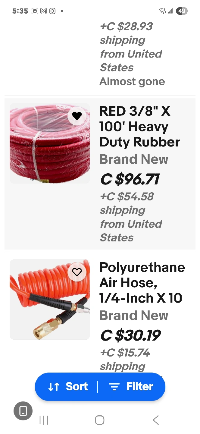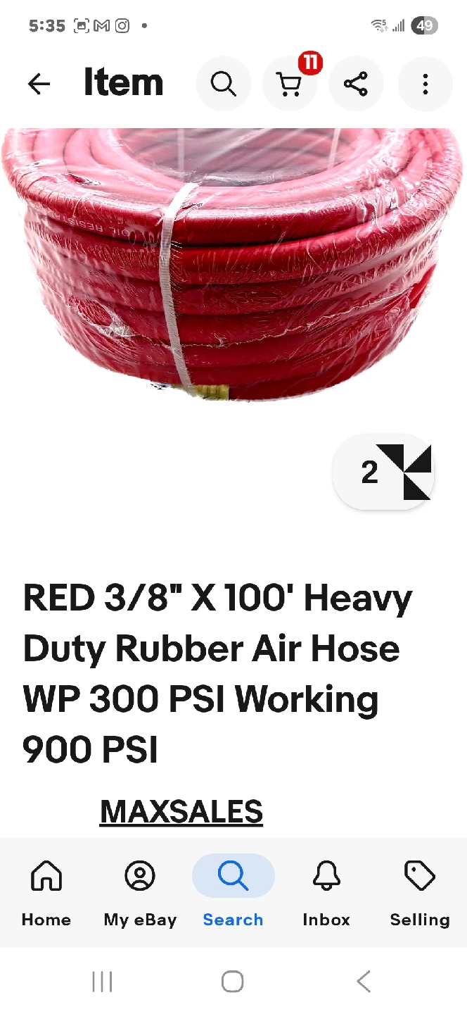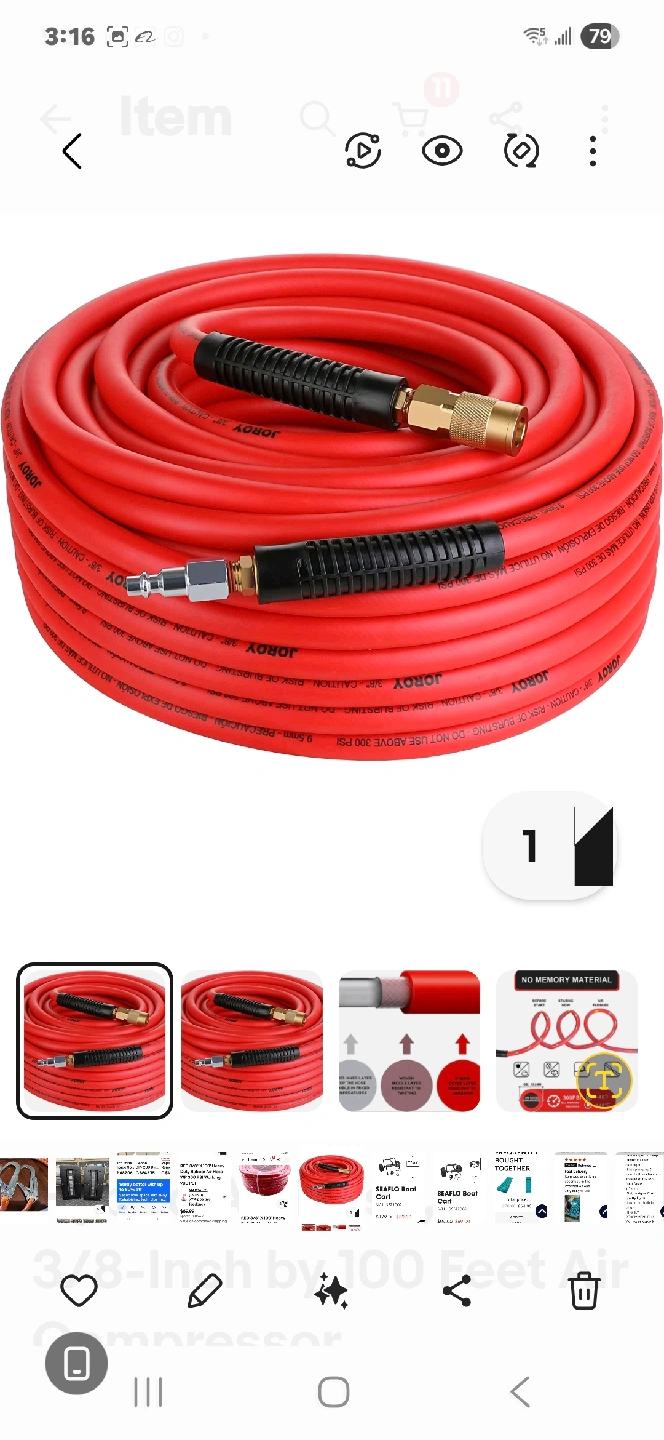 This is a JOROY 3/8-inch by 100 feet air compressor hose in red. It's a heavy-duty rubber air hose with a working pressure of 300 PSI and 900 PSI. The hose is made with no memory material. The prices in the picture is u.S prices, my price is in canadian$100 or best offer, please look at my other ads in kitchener