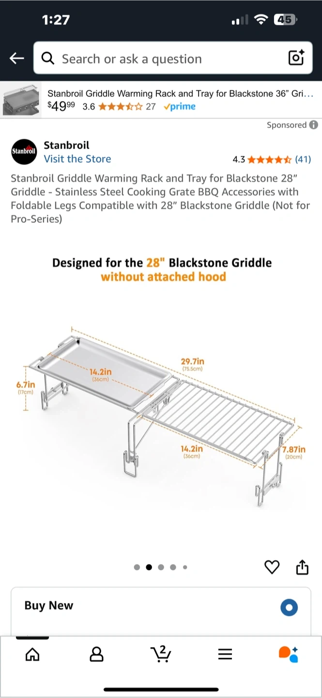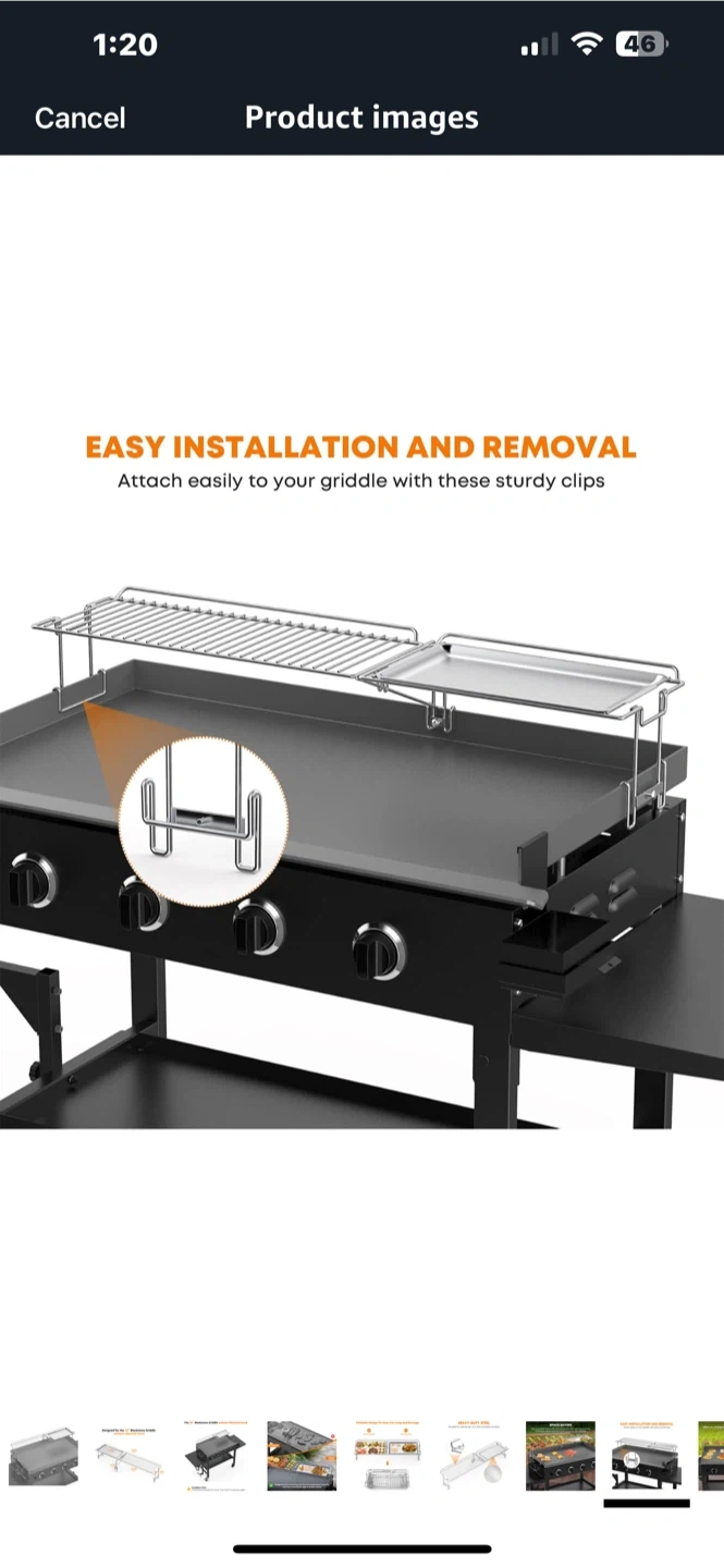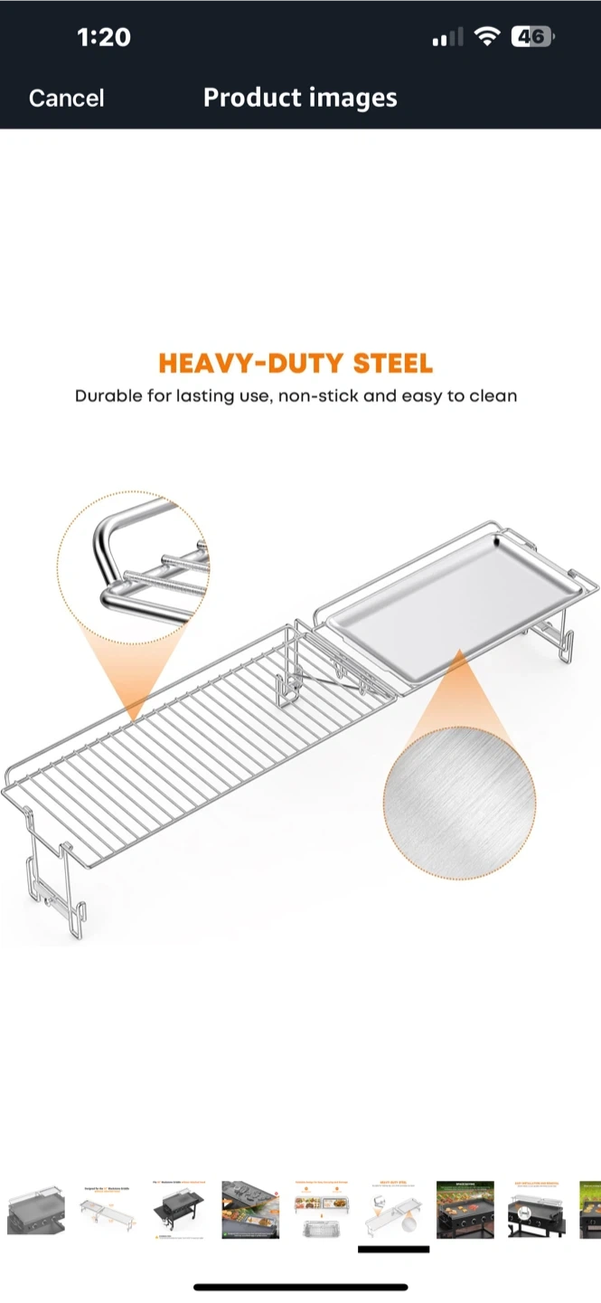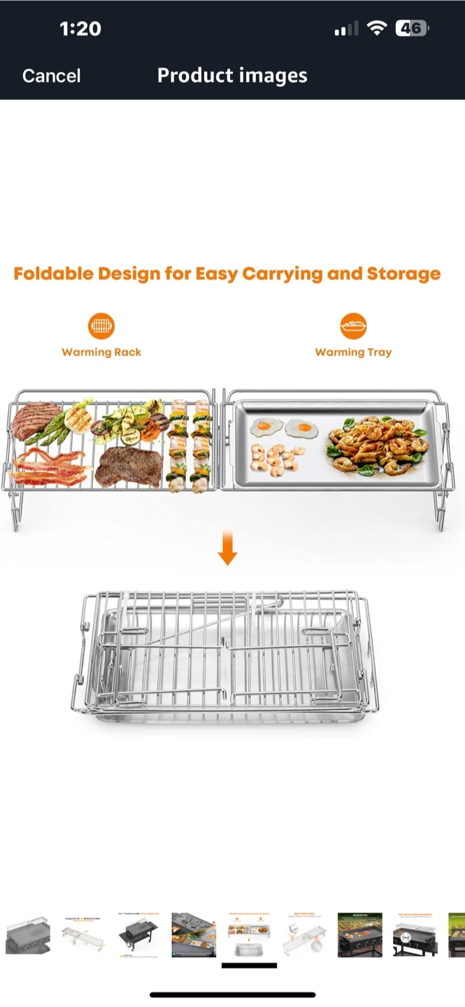 Get more out of your griddle with this Stanbroil warming rack and tray! It's designed for 28" Blackstone griddles and made of heavy-duty steel, so it's durable and easy to clean. The foldable design makes it easy to carry and store, and the clips make it easy to install and remove. It helps free up griddle space so you can prepare other food and avoid clutter on the tabletop