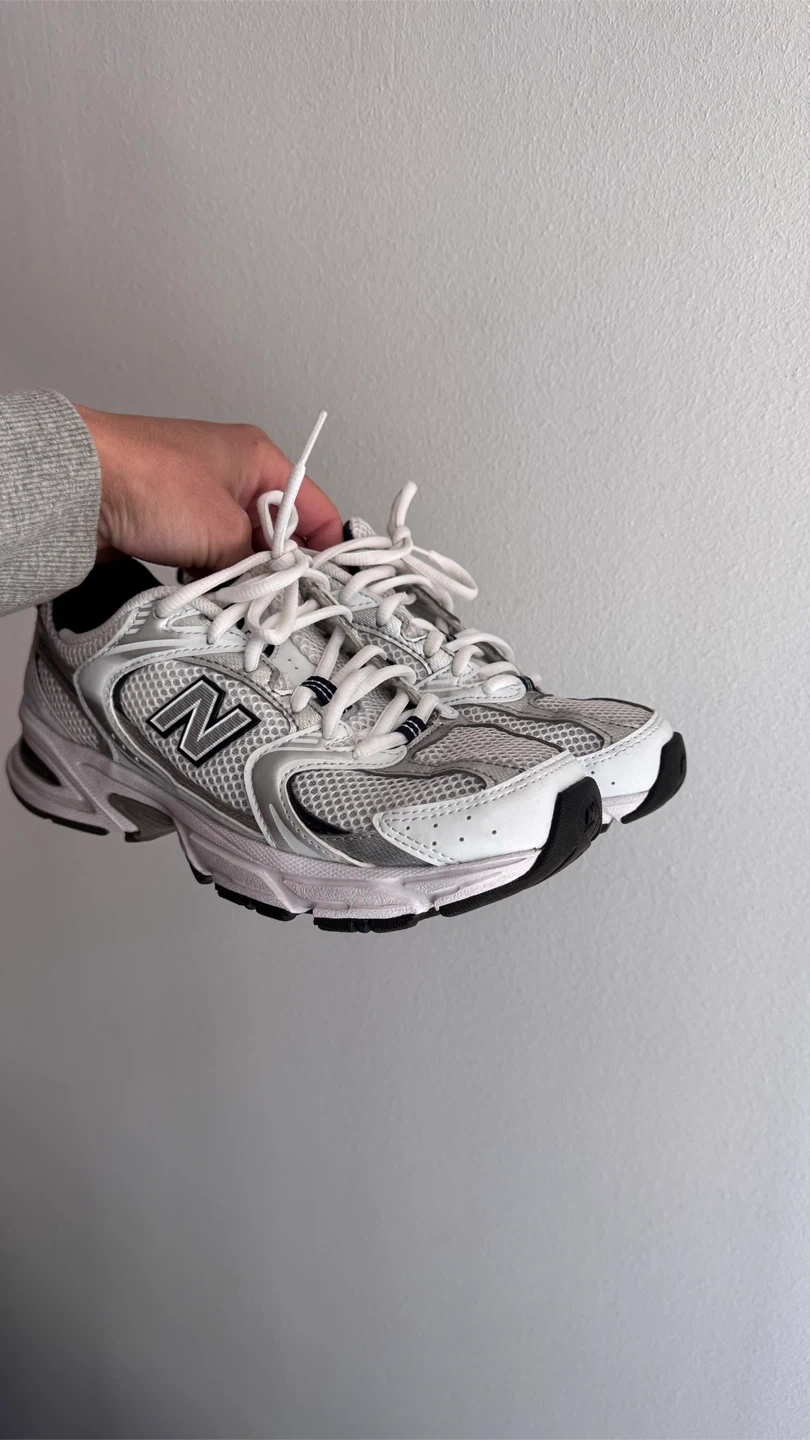 10Selling a pair of New Balance 530 sneakers in white and silver! Worn twice - too small for me. - Brand: New Balance - Model: 530 - Color: White/Silver - Size: US Women's 5.5