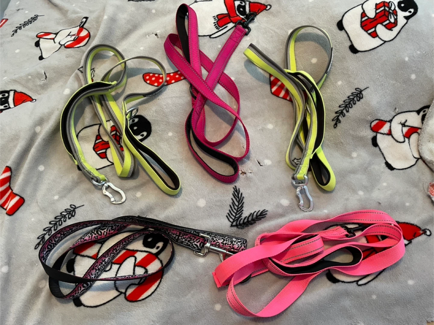 169Pick Up Only Close Too 1890 Jane Street (I DO NOT MEET THERE) Exact Address Is ONLY Given When Person Is On There Way! Lobby Pick Up Only! See My Other Listings For More Amazing Furbaby Items Serious People Only! Cash Or Etransfer Payment Only **FIRST COME FIRST SERVE BASIS** $20 FIRM ALL Must Take All! Great for someone with a spoiled dog, multiple dogs or even dog walkers! I dont need them anymore, all in Amazing Condition, no damages or chew marks etc! 4 Leashes are double handle style, which is great for larger dogs as easier to handle! 1 leash is just a regular leash 4 Leashes are 5’ Long & the Cheetah one is 4’ Long Worked for a friends great dane if that helps for sizing lol!