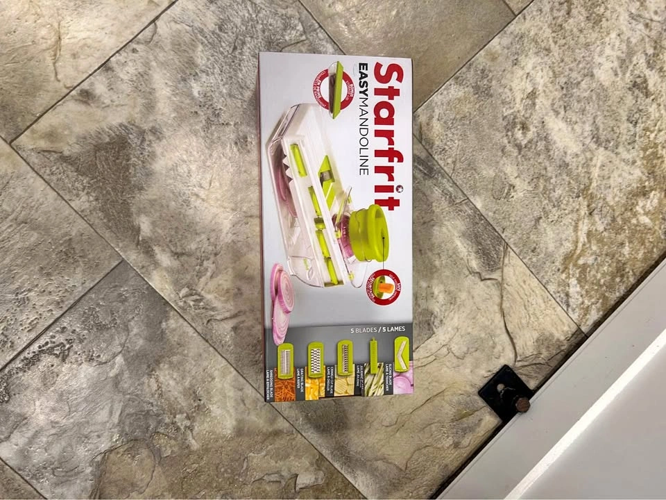 I'm selling a Starfrit Easy Mandoline! It comes with 5 different blades for slicing and grating your veggies. It's perfect for making salads, stir-fries, and more. Easy to use and clean!