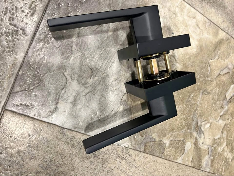 Selling a modern door handle set in matte black. It's in great shape and ready to install to give your door a sleek, updated look! Perfect for any contemporary home. There is no lock on this handle.