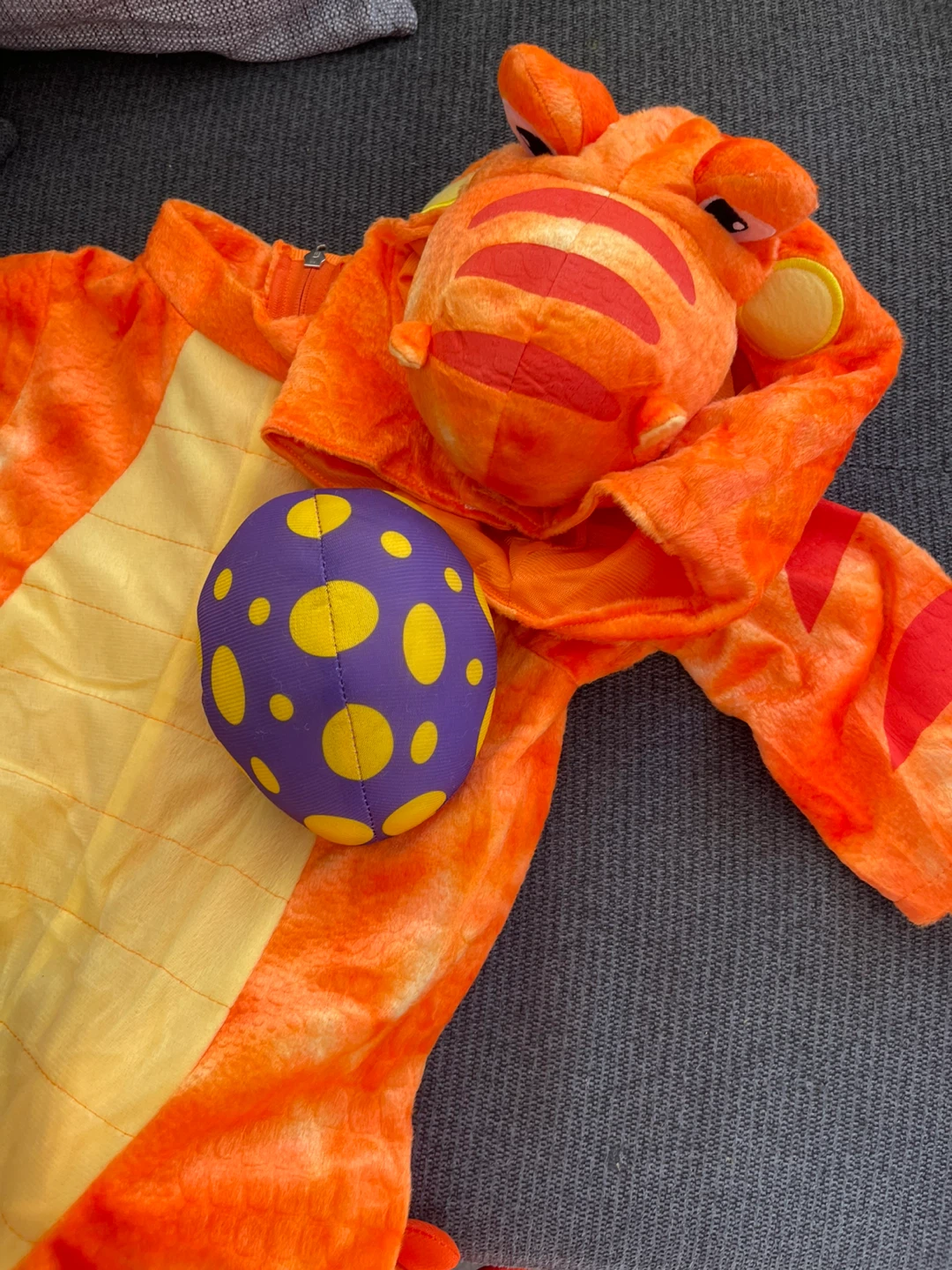 Selling a cute Spooktacular Creations child dinosaur costume, complete with the egg accessory! Mom purchased this for my Daughter few months ago for a bday party but we didn’t had a chance to attend it and perfect for Halloween or dress-up parties. The colour is a vibrant orange, sure to make your little one stand out.