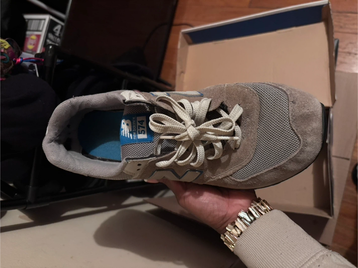 Selling a pair of New Balance 574 Classics in grey and blue.