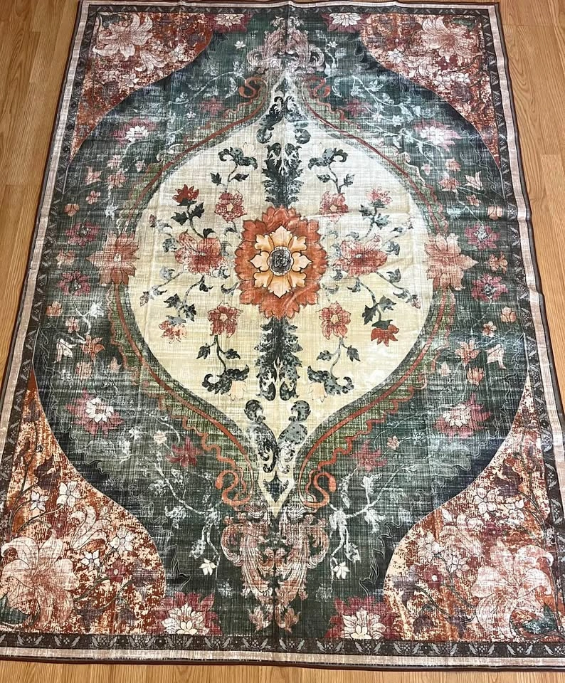 Brand new rug. Stylish green and beige area rug with an elegant, vintage-inspired floral and medallion pattern. Perfect for living rooms, bedrooms, dining room, or business office. Non slip, low pile, easy to clean and machine washable. Pet and smoke free home. Pick up in NW.