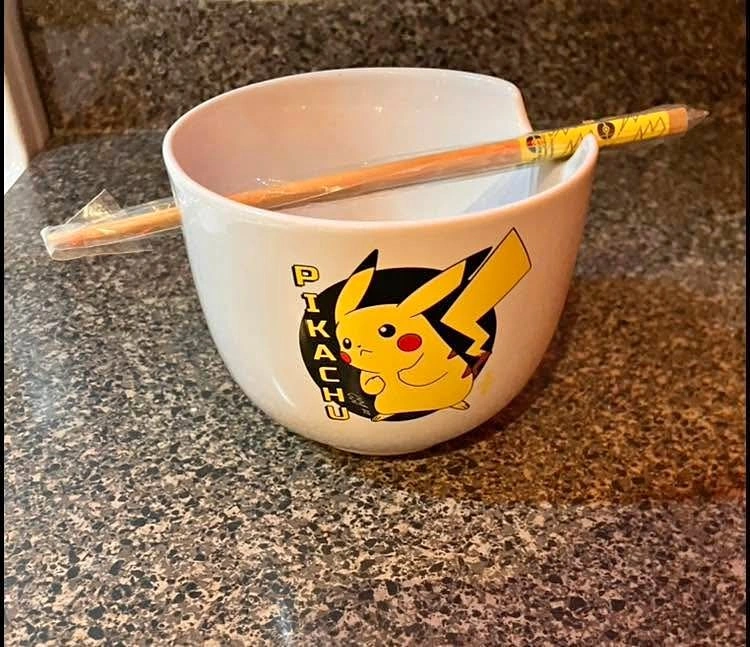 90I took it out of the packaging when decluttering but it’s brand new and never used— the chopsticks are still in the original packaging! The perfect gift for yourself or any Nintendo/Pokemon fan :)