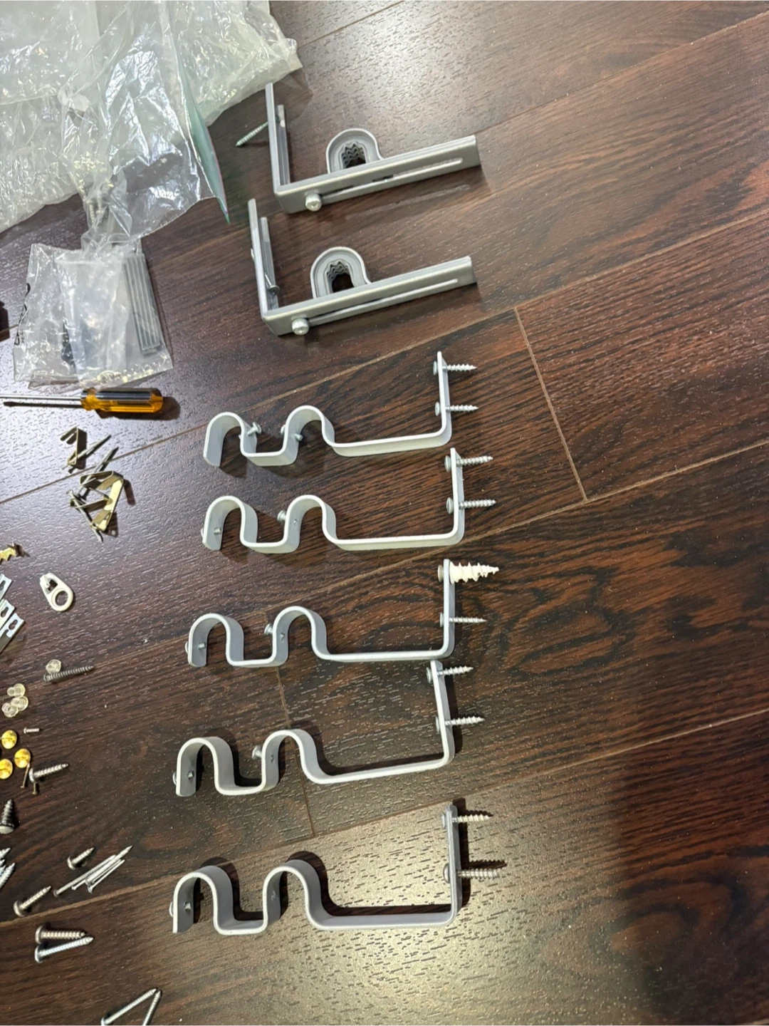 5pcs Curtain Rods, 7pcs Brackets, 4pcs finials