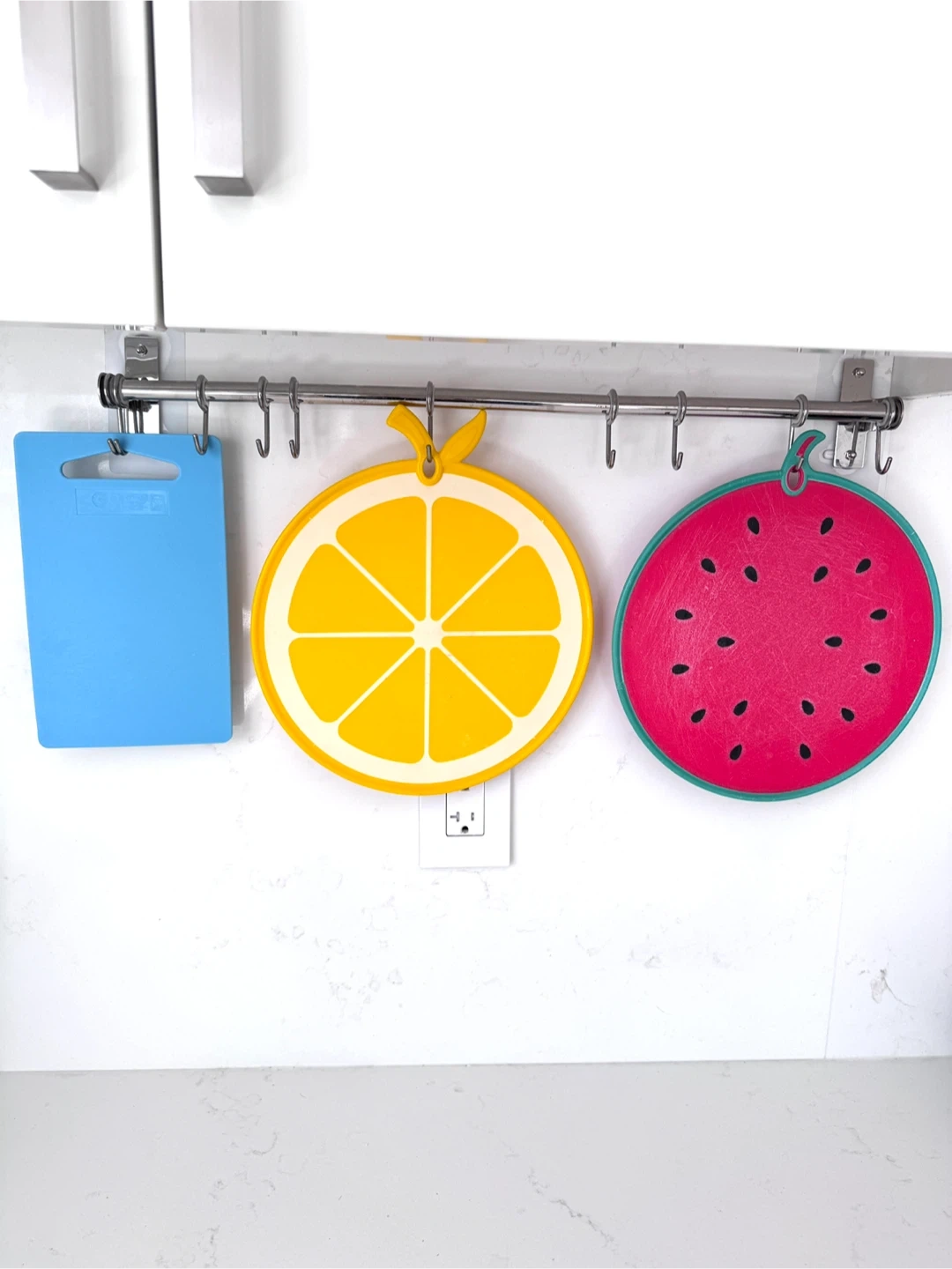 51Cute set of fruit-shaped cutting boards to brighten up your kitchen! Includes a watermelon, orange, and a blue rectangular board. Perfect for adding a touch of fun to your food prep! 3 for $10