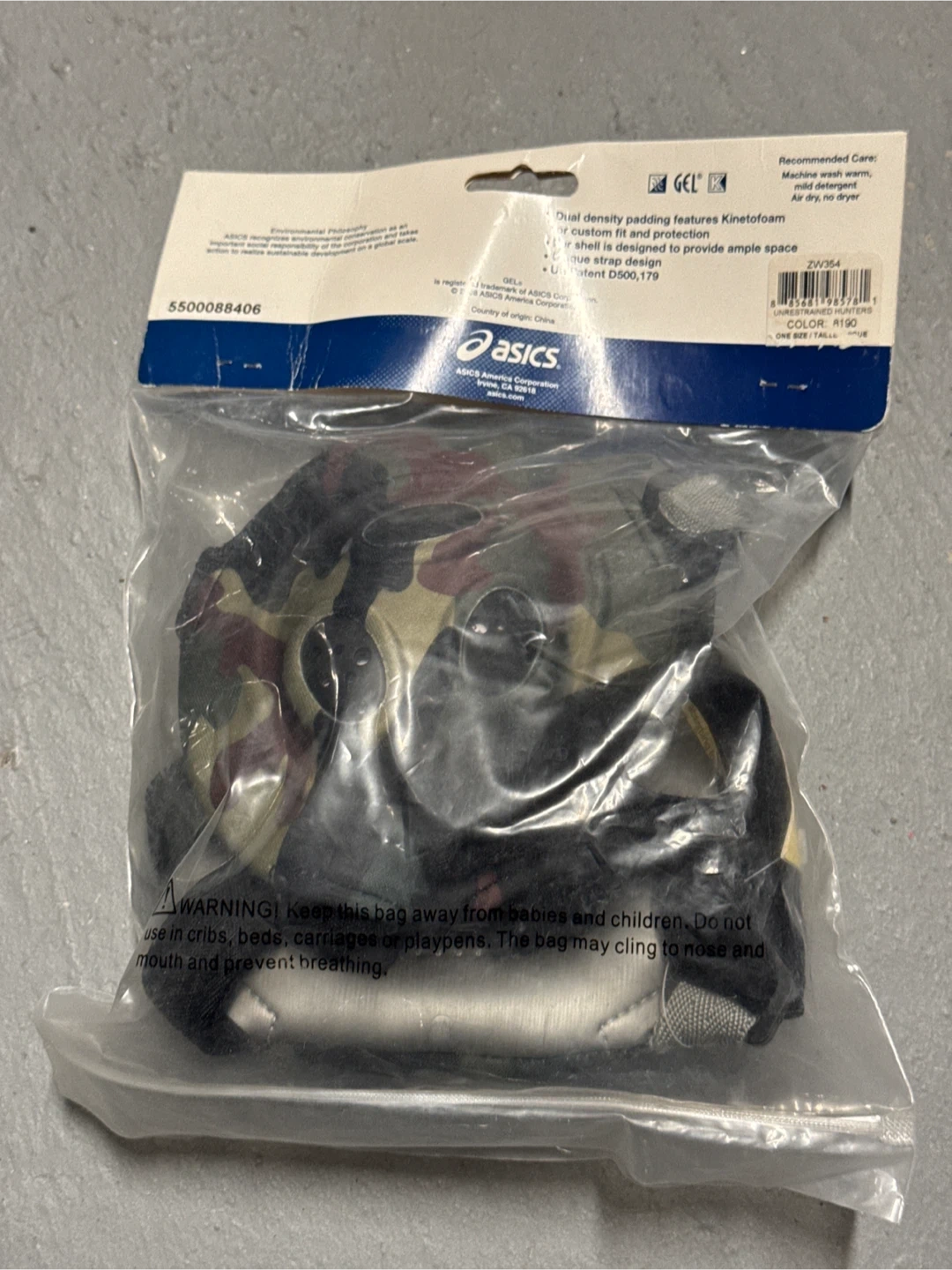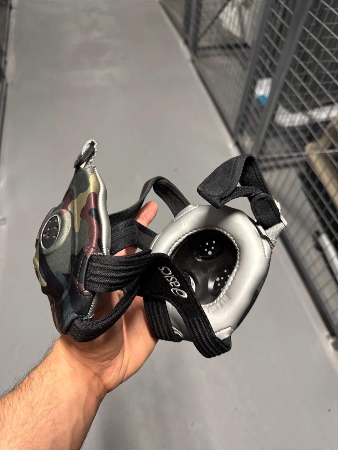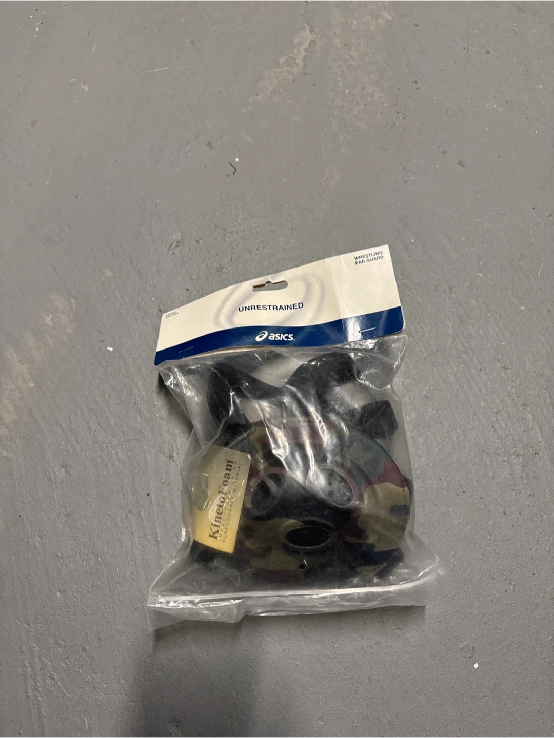 NEVER USED BRAND NEW. MMA/ Wrestling/BJJ Selling a brand new Asics Unrestrained Wrestling Ear Guard in camo colour! It features dual density padding with Kinetofoam and shell designed to provide ample space. It also comes with the original packaging